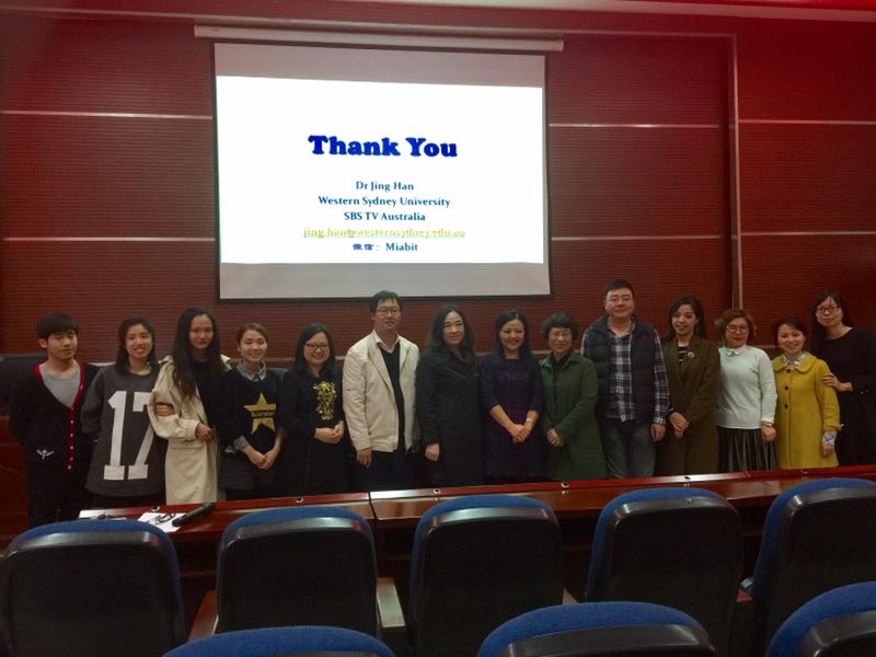在讲座中,韩静博士以她从事中文影视翻译20多年的经验入手,主要以大型相亲节目«非诚勿扰»和电影《我不是潘金莲》中的英文字幕翻译为例,深入浅出地讲解中国文化走出去的基本原则和成功要素。韩静博士还在评判翻译的标准方面,援引Juliane House的两种分类评审模式,来看文化翻译评判的挑战以及澳大利亚国家电视台字幕部的评判方式。
