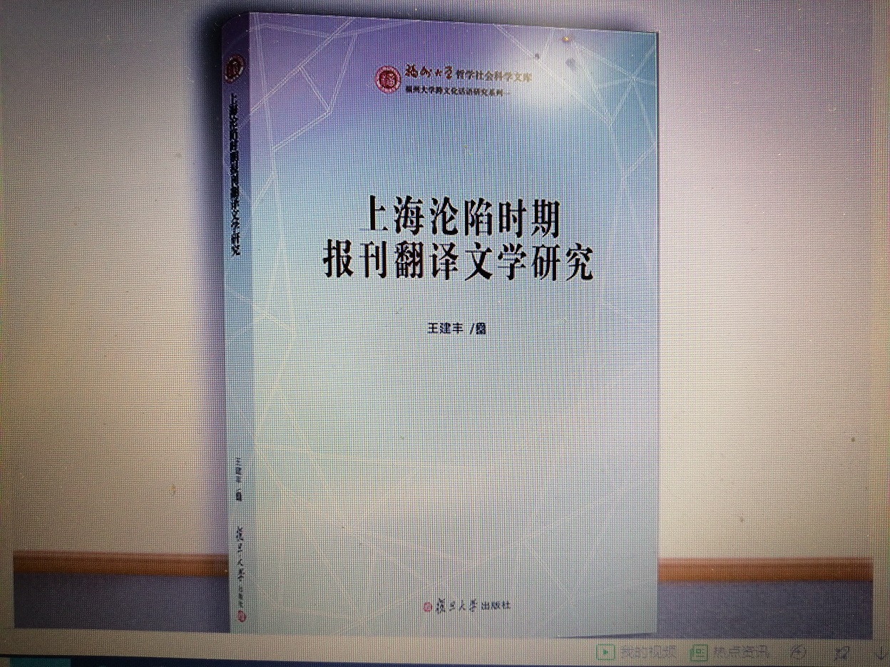 2019年,《上海沦陷时期报刊翻译文学研究》由复旦大学出版社出版。该书对上海沦陷时期(1941.12-1945.8)百余种报刊刊载的翻译文学作品进行了系统地搜集、考证、整理和研究。文学史家赵稀方先生在封面推荐语中写道:“上海沦陷时期的翻译有人谈过,但从报刊角度进行系统梳理的著作,这还是第一部,可以说具有不可替代的学术贡献。”
