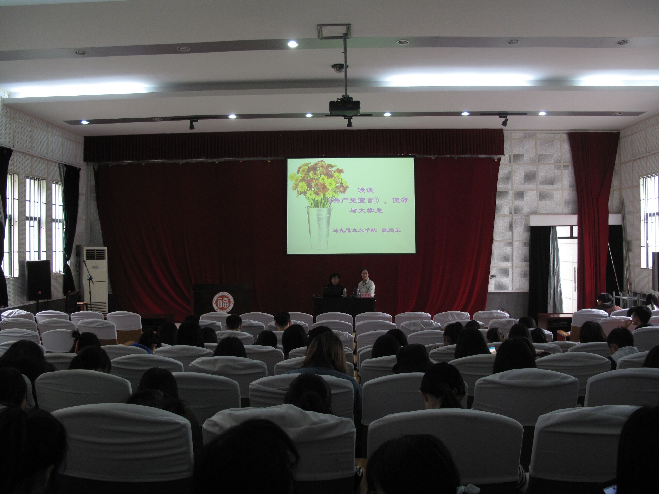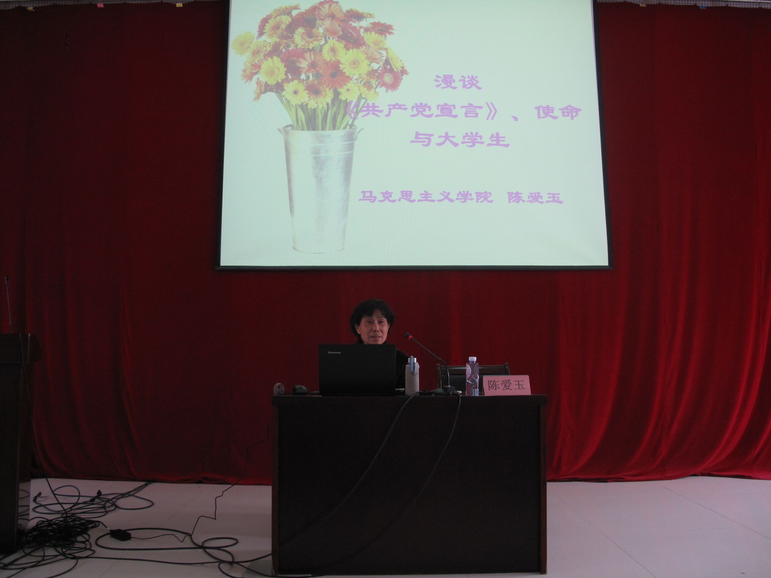 陈爱玉老师围绕“共产党宣言,大学生与使命”的主题,为大家详细介绍了《共产党宣言》的基本概况及其对中国共产党所产生的重要影响,深刻阐述了中国特色社会主义现代化的进程与中国共产党的历史使命,并倡导同学们积极成为共产党宣言的实践与继承者,面对时代问题和历史发展潮流做出当代青年应有的回答。