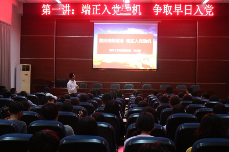 开班仪式由陈德铭副书记主持。陈书记要求全体入党积极分子应端正学习态度、学以致用,并预祝全体入党积极分子学习愉快,圆满完成培训任务。第一课《坚定理想信念,端正入党动机》由柯江锋老师主讲。他针对“坚定理想信念的重要性”、“入党动机是什么”、“正确入党动机的内涵”、“如何端正入党动机”四个方面分别进行了详细的讲解。最后,柯江锋老师用习近平主席的话“青年一代理想、有担当,国家就有前途,民族就有希望,实现中华民族伟大复兴就有源源不断的强大力量”作为结语,希望全体入党积极分子进一步坚定入党决心,争取早日加入党组织,成为一名优秀的共产党员。