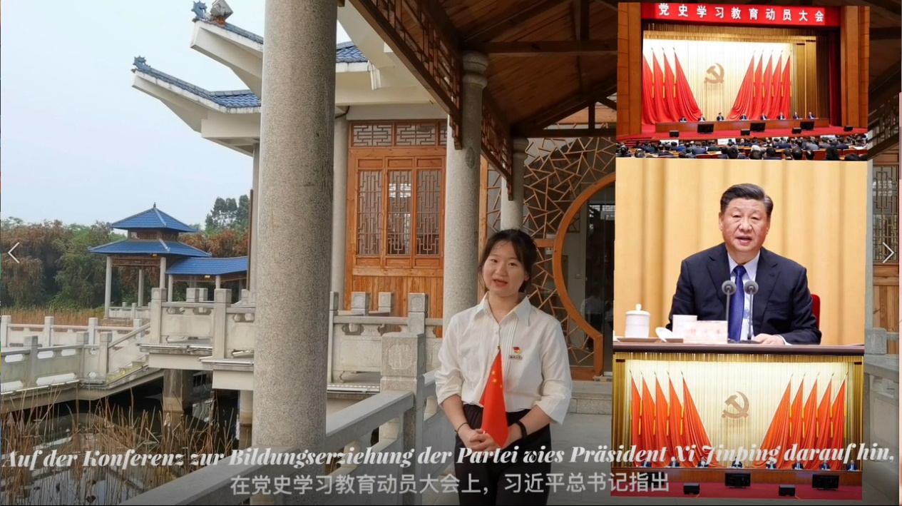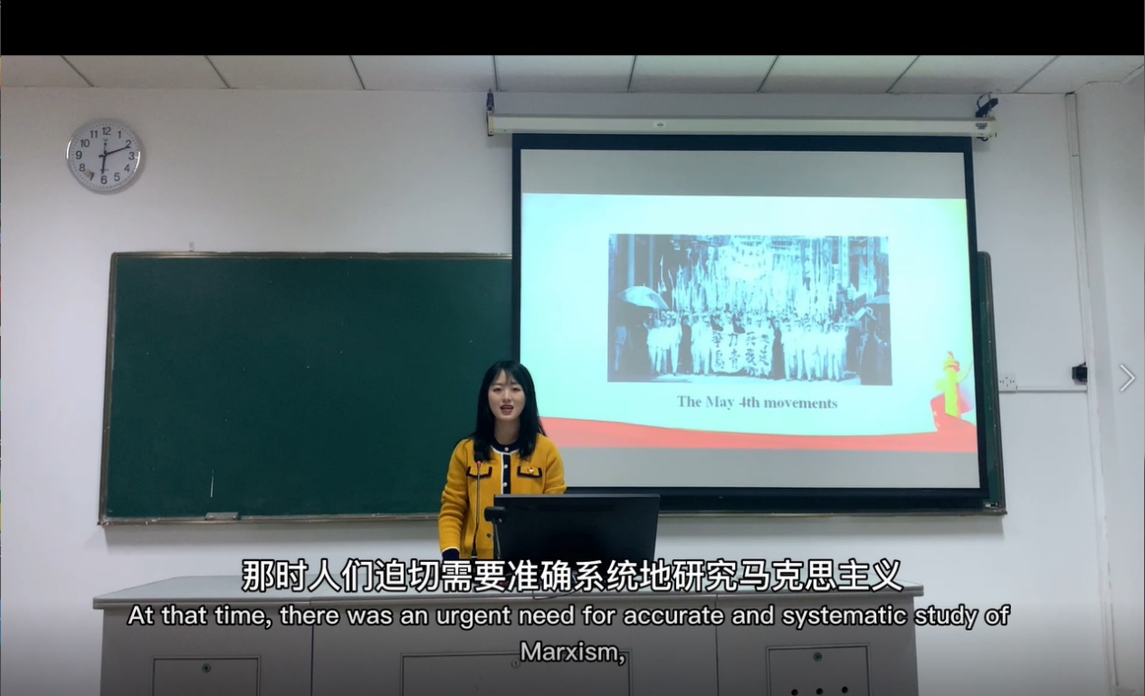 同学们从自身所学出发,用生动流利的外语讲述着一个个党史故事,或娓娓道来、打动人心或慷慨激昂、催人振奋。充分展现了当代青年的蓬勃生机和身为外语人的奋斗精神。2019级英语笔译研究生黄紫菁同学从陈望道首译的《共产党宣言》为主题切入献礼建党100周年,2019级英语三班张辛清同学讲述了发生在福建龙岩的红色故事——“中央红色交通线”,2019级德语五班朱望悦同学说道:“应当注重学习党史,从历史中获得启迪,努力为实现中华民族伟大复兴的中国梦贡献智慧和力量。”同学们纷纷表示:在录制微党课视频的过程中,自己对党史也有了更加深刻的认识,能够运用自己的专业知识为中国共产党成立100周年贡献力量感到非常的高兴与自豪。自己作为一名大学生,更作为一名青年党员,应当认真学习党史,努力为实现两个一百年奋斗目标、实现中华民族伟大复兴的中国梦贡献智慧和力量。