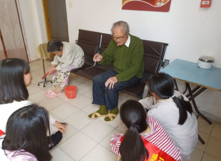 活动当日下午两点志愿者们乘公交前往五福缘敬老院。到达敬老院后,志愿者们被分配至不同楼层探望老人:有的志愿者陪伴老人散步,亲切地拉起了家常,老人们兴致勃勃地和志愿者们讲述自己年轻时的故事;有的志愿者与老人合影,用相机记录下愉悦的点滴;有的志愿者嘱咐老人们留意天气变化,注意保暖......整个敬老院萦绕着欢声笑语,一片和谐之景。老人们对于Av在线观看