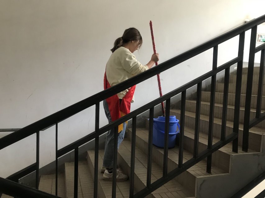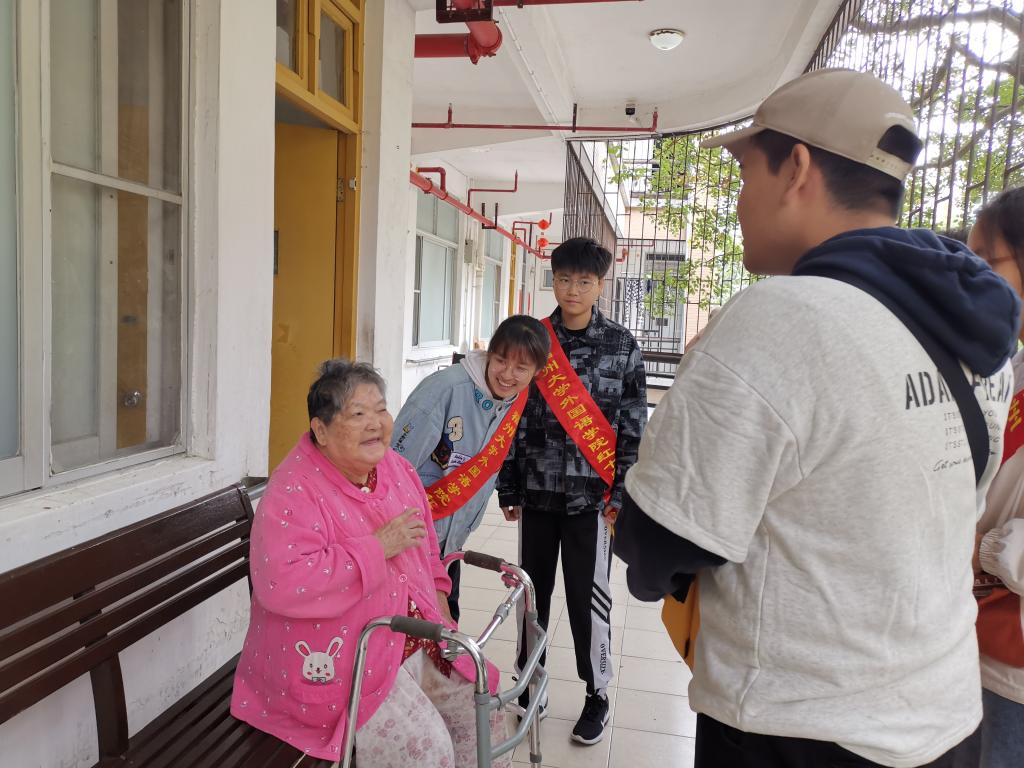到达敬老院后,负责人张惠杰与敬老院工作人员对接,并给志愿者们分配工作:陪伴老人和打扫楼道。现已入秋,一些老人坐在走廊上,呼吸着新鲜的空气,志愿者们则围成一个圈,和老人积极互动,拉近了与老人的距离。从工作人员幽默的话语中,从老奶奶兴奋的语调和深深的笑意中,志愿者们感受到了善意与关怀。伴着悠扬的红色革命歌曲,从老人们的故事中,志愿者们了解到他们曾经在自己的岗位上“不忘初心,牢记使命”,兢兢业业、恪尽职守、奉献一生。