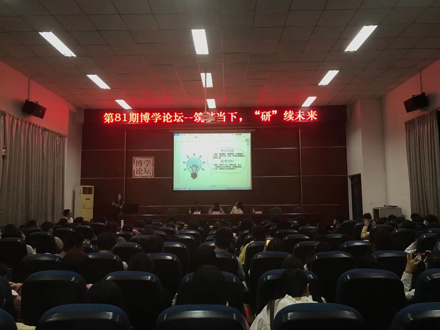 学生委员会主办,外国语学院团委、学生会承办的主题为:筑梦当下,“研”续未来的第81期博学论坛在外国语学院院办三楼会议室顺利举办。外国语学院100多名学生参加本次讲座。