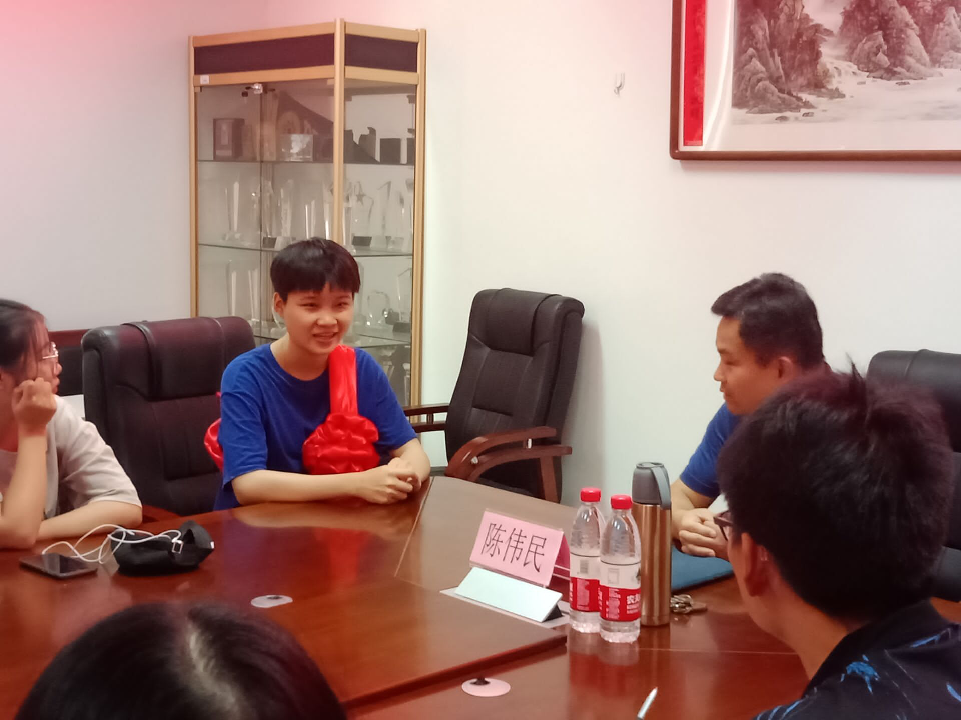 陈慧敏同学对陈伟民书记和赖斌老师的建议与指点,辅导员的关照以及对陪伴两年的同学表示感谢,并表示将在入伍后继续努力,为国防建设做出贡献。