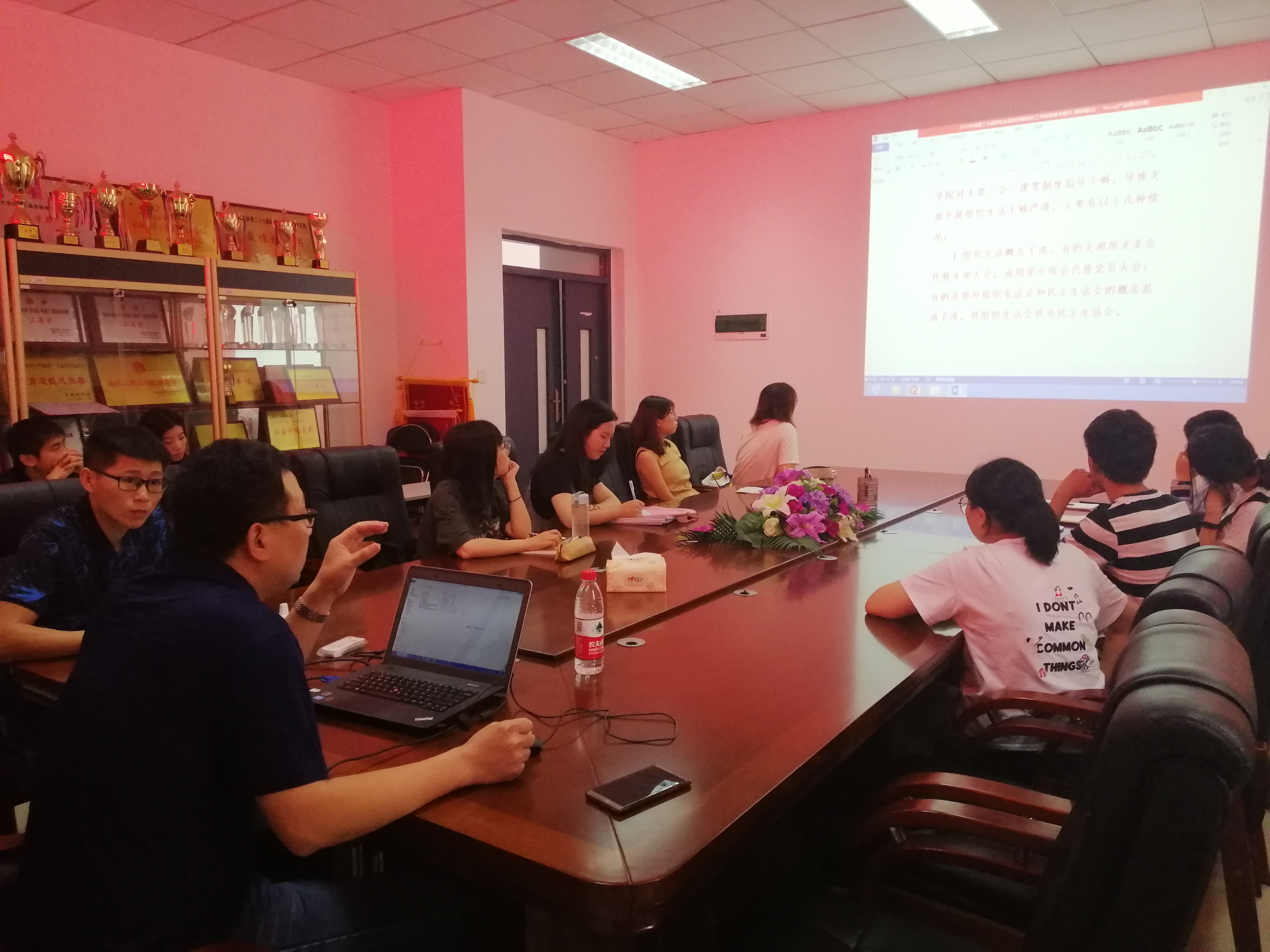 会上,赵鹏老师首先就“三会一课”制度内容进行阐述,结合实际情况进行分析,明确了每月至少一次召开党员大会和支部委员会、一个季度一次支部党课、年底一次组织生活会开展批评与自我评批。接着,提出支部应做好党建工作,规范会议记录。最后,结合往年支部中存在的问题分析,要求各支部需要按时、高效、细心地完成党建工作。