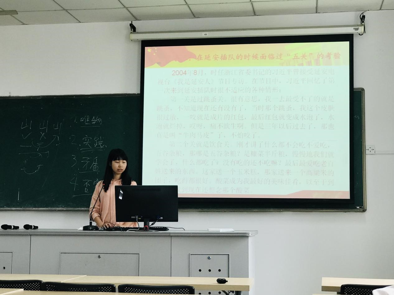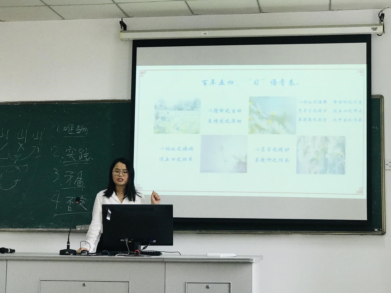 此次学术交流的主题是开展习近平总书记关于青年工作的重要思想大讨论。江捷同学主要对习近平在纪念五四运动100周年大会上的讲话精神进行了解读,她认为,作为五四精神的核心,爱国主义始终是推动中国发展进步的强大精神动力。指出讲话对新时代中国青年提出了树立远大理想、热爱伟大祖国、担当时代责任、勇于砥砺奋斗、练就过硬本领、锤炼品德修为的六点要求,都要靠永久奋斗去实现。郑轲鹏同学结合自己的学习生活体验对马克思主义进行自己的解读,强调了唯心主义与唯物主义的区别、实践的重要性、矛盾的普遍性,并号召大家在生活中正确运用马克思主义。高嘉庆同学结合自身参加各类征文写作经历谈了如何进行学术思维训练,发挥青年学生作用的学以致用。张晓金同学以五四运动100周年为主题,主要从寻源、体验和感悟三个部分谈了自己的学习体会。她表示,新时代青年要努力学习科学文化知识,用科学的思想武器武装我们的头脑。林佳佳同学围绕习近平的青年时代,分享了个习近平青年时代的数则小故事,号召大家坚定理想信念,向青年时代习近平学习。陈鸿同学结合时事谈了新时代青年的困境与出路,结合当代背景,讨论了何为“好学生”“好青年”、青年需要什么以及给我们的启示。活动在浓郁的学习氛围中圆满结束。