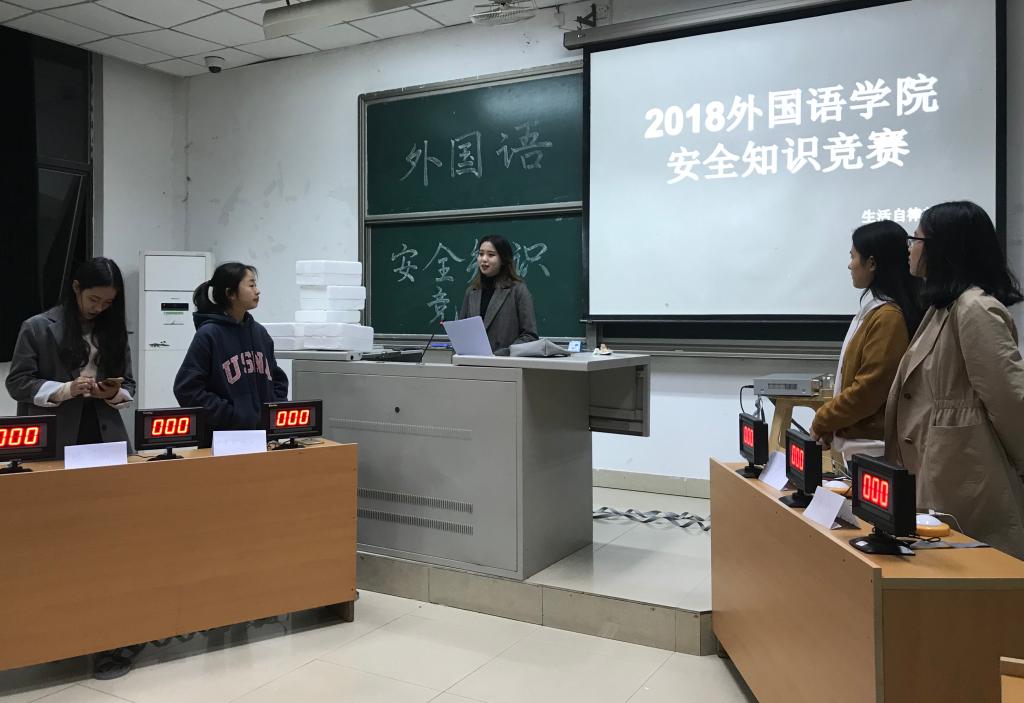 生活自律部主办的2018外国语学院安全知识竞赛于11月24日晚7时,文一105室顺利举办,来自各个年段数十名同学组成13支队伍参与了本次比赛。