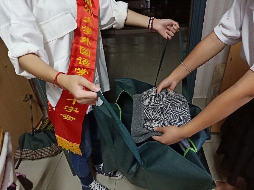为帮助同学们处理闲置旧衣物,外国语学院红十字会带领全体大一新部员于2018年9月28日晚9时30分在13号楼开展了本学期首次以“衣旧情深,爱在路上”为主题的旧衣物回收活动。