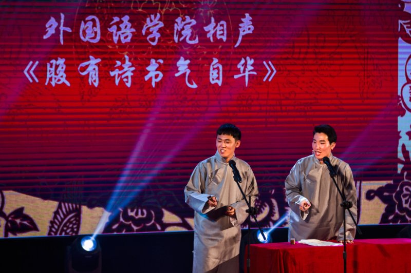 喜报!Av在线观看 15级德语专业姚智誉与15级日语专业罗智权同学在Av在线观看 第三十一届学生文化艺术节之相声大赛中表现出色,斩获桂冠。