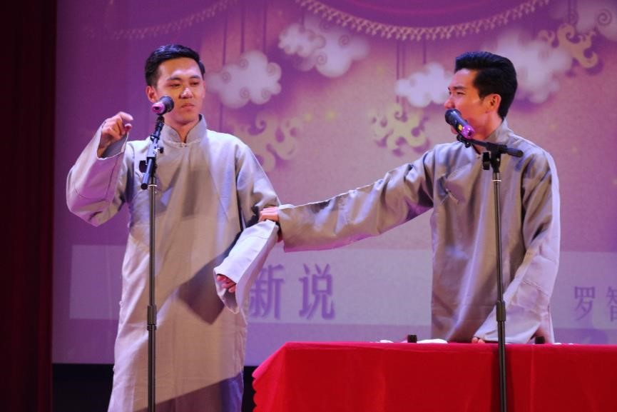 晚会伊始,四位歌手队带来的中文歌曲联唱《singing in the silver moonlight》迅速带动现场观众,歌手们高音迭起,富有激情的演唱让现场观众直呼过瘾。紧接着,姚智誉、罗智权两位同学带来的《史记新说》,以幽默诙谐的方式解读众所周知的历史故事,极具创意。随后,钢琴伴唱《爱情的模样》、《Butterfly》、《好好》,娓娓道来,深情款款。现代走秀《莫斯科郊外的夜晚》,精致的民国风装束,模特曼妙的身姿,赢得观众阵阵尖叫与欢呼,爵士舞《反正不甜》活力四射,青春的舞动深深感染着观众。