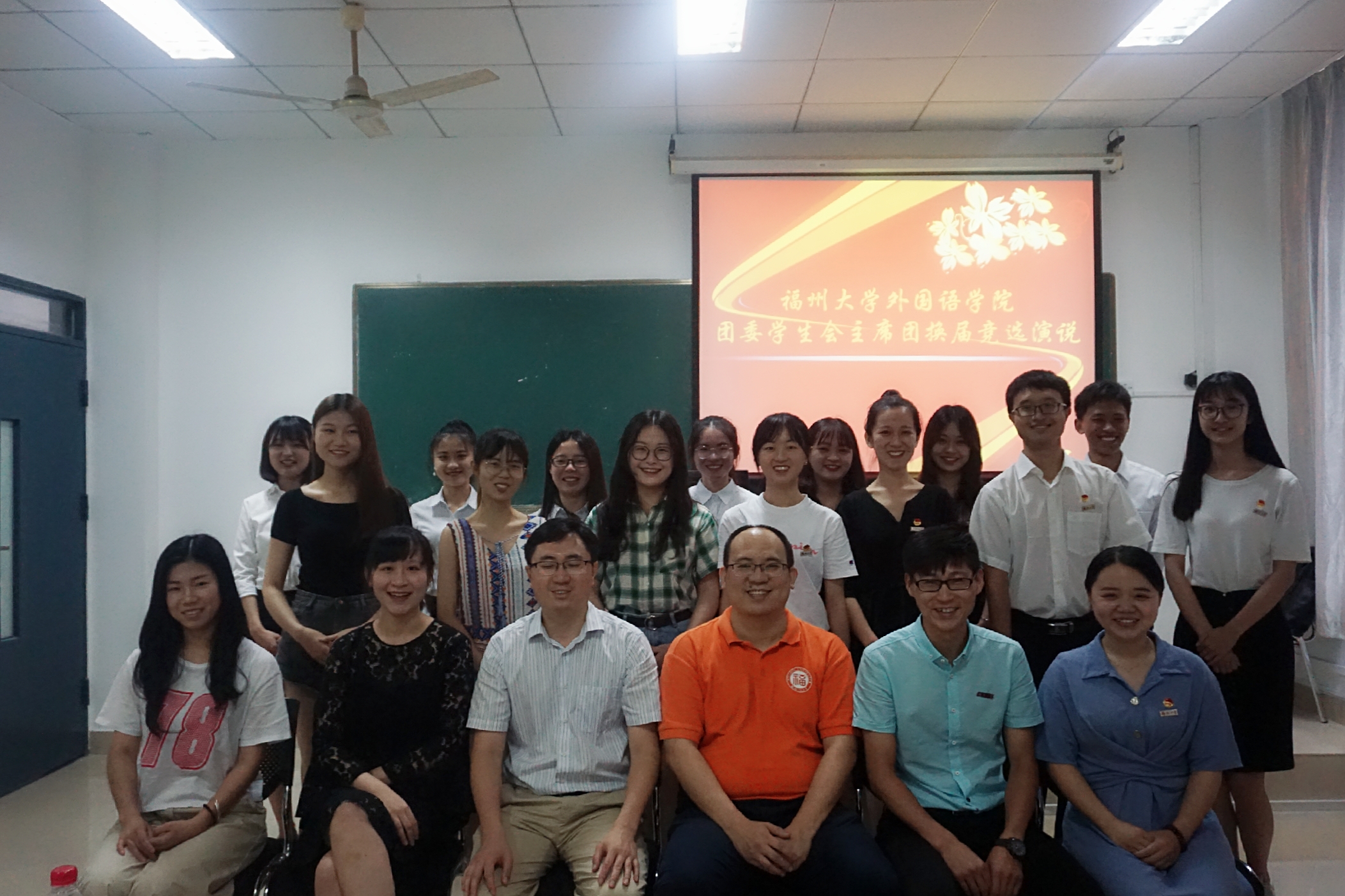 学生会主席团换届竞选大会。校团委林航副书记、学院党委王三强副书记、团委林昕书记、2015、2017级辅导员唐斌湖以及学院学生会主席团、10名参与竞选的学生参与大会。