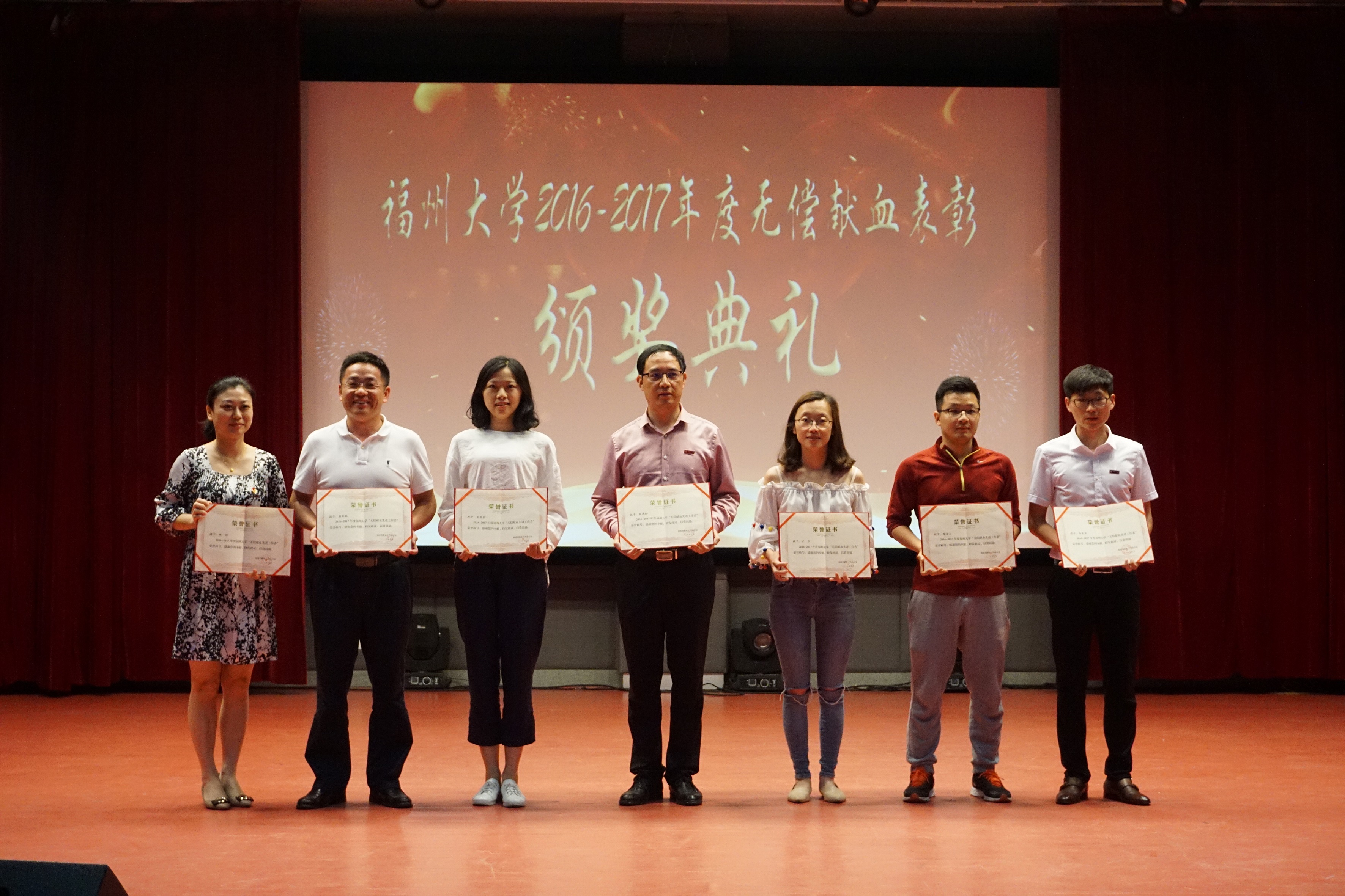 在此次表彰大会中,外国语学院16级英语专业田钰雯同学荣获无偿献血先进个人代表奖,外国语学院团委书记林昕老师荣获无偿献血先进工作者奖,外国语学院荣获无偿献血先进学院奖。