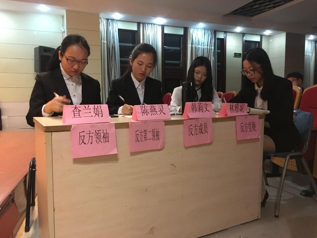 校决赛在素拓多功能厅举行。经过初赛的激烈竞争,共有来自外国语学院,经管学院和人文学院的四支优秀队伍晋级今晚的校决赛。此次比赛由戴力芬老师,刘燕老师及王雅慧老师担任评委。