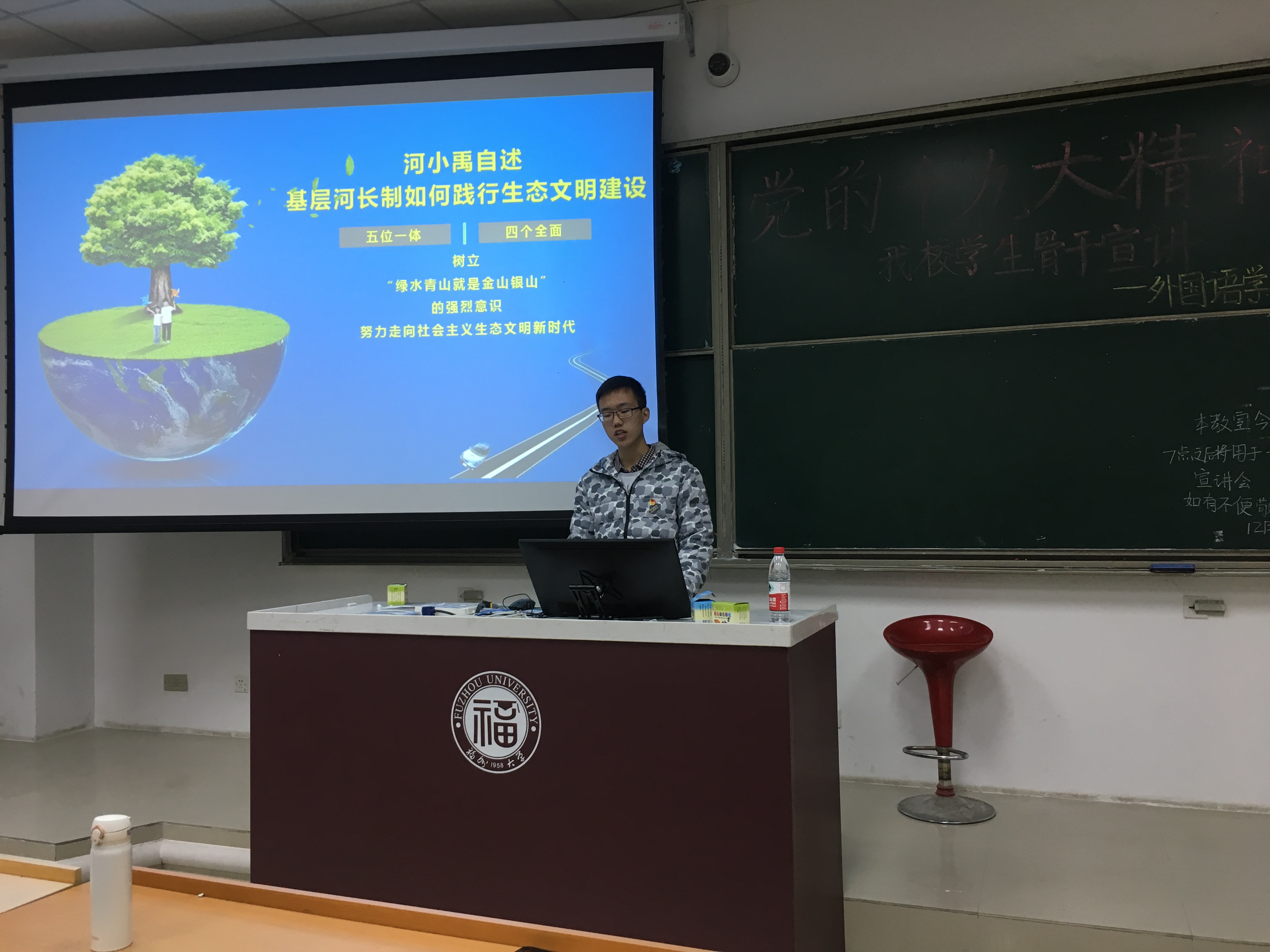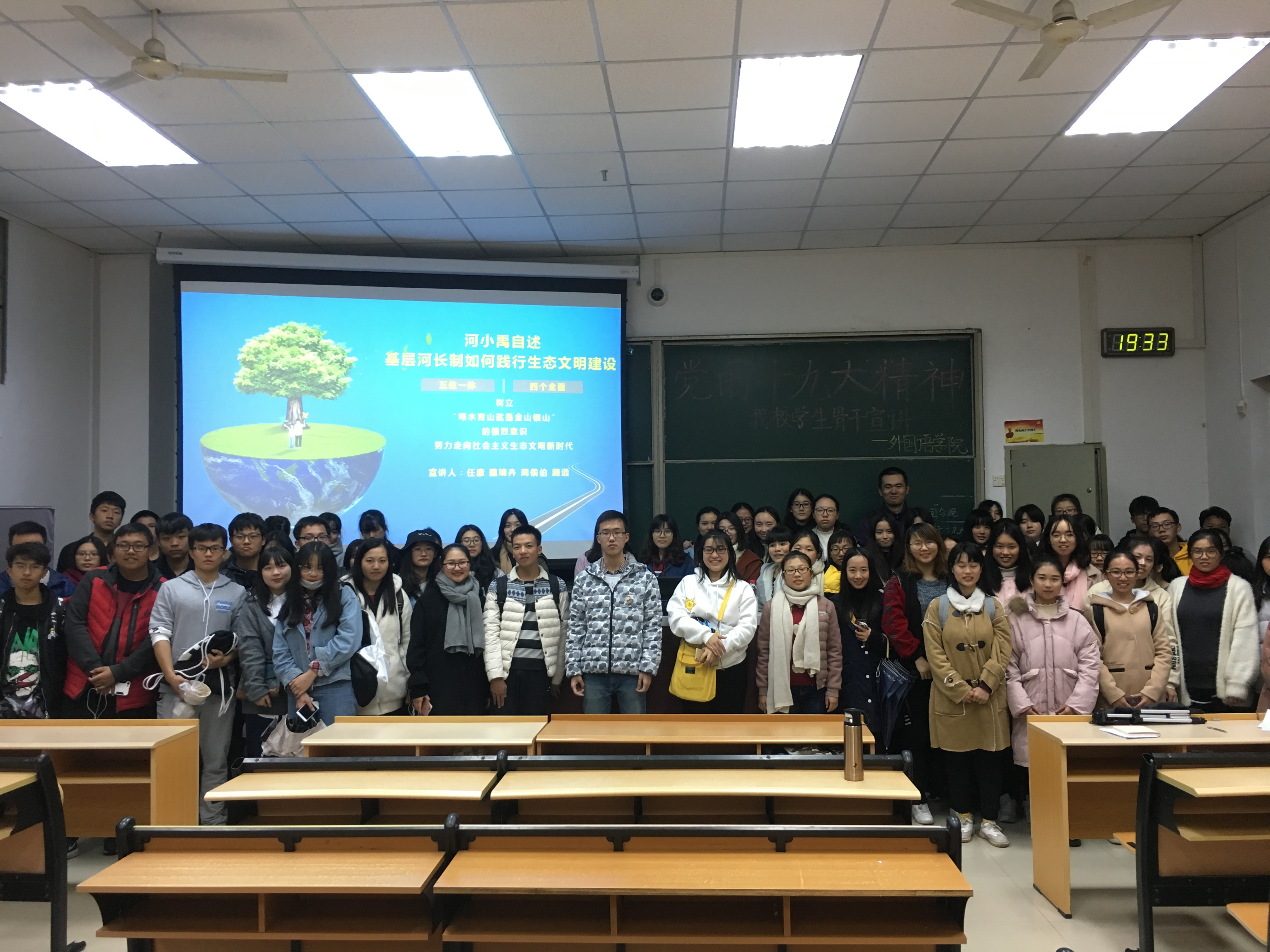 此次宣讲会秉持党的十九大精神和生态文明建设理念,为我们阐释了当代大学生在生态文明建设方面的责任与义务,号召当代青年大学生们争做生态文明建设的实践者、引领者,共同建设美丽新中国,具有一定的积极意义。