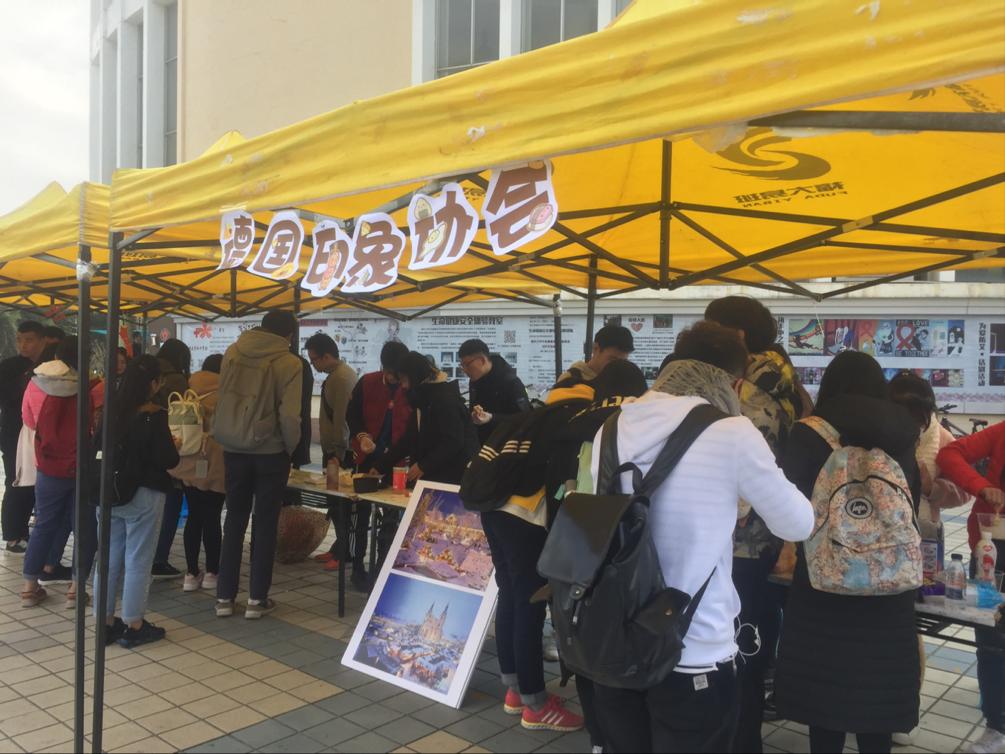 主办,德国印象协会、樱花日语爱好者协会、英语口语协会共同承办的外语文化一条街在青春广场顺利举办。