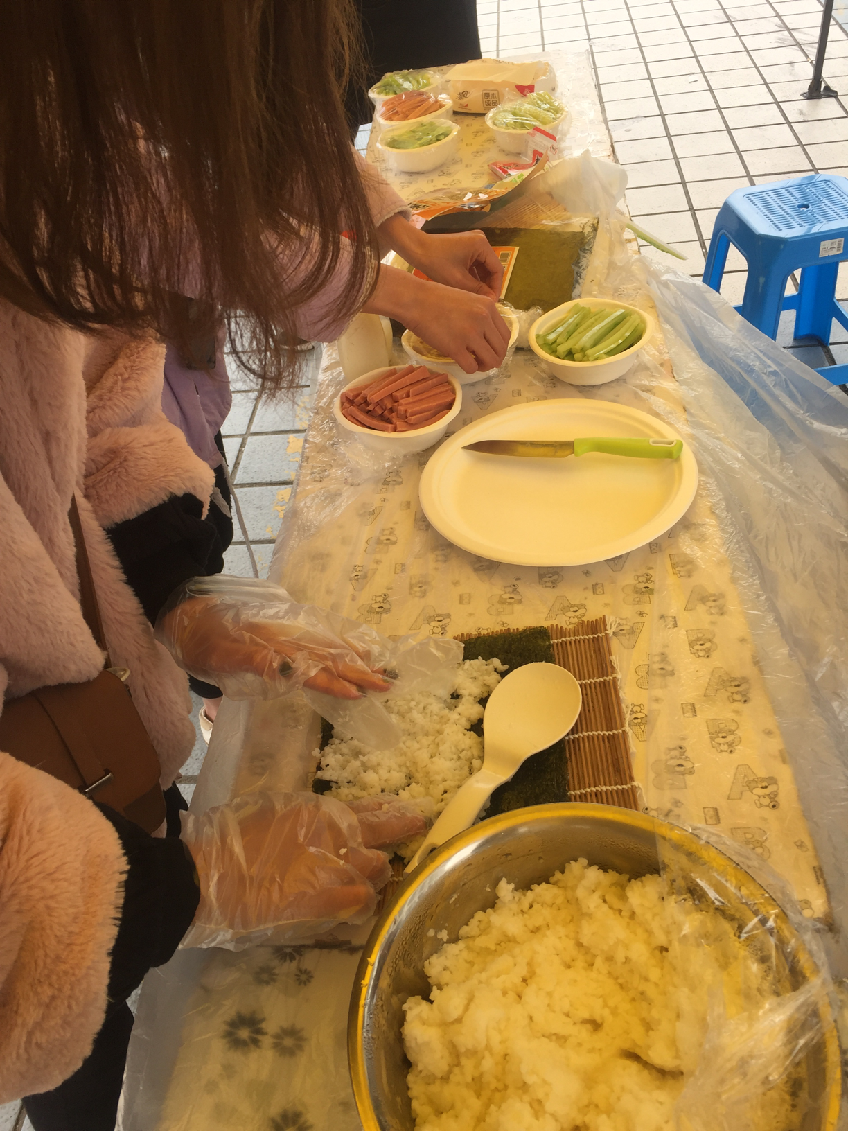 上午九点,活动正式开始。前来参加活动的同学们进行了有趣的互动。首先,他们回答了有关英、日、德三国基本知识的问题。十题答对六题即可参与特色食物制作。随后,由同学们自行选择制作各国美食,包括德国早餐Müsli 、英国三明治和日本寿司等。除了知识竞答和美食制作环节,同学们还体验了具有异国风情的日本浴衣试穿和德国特色小游戏。活动现场气氛热烈。