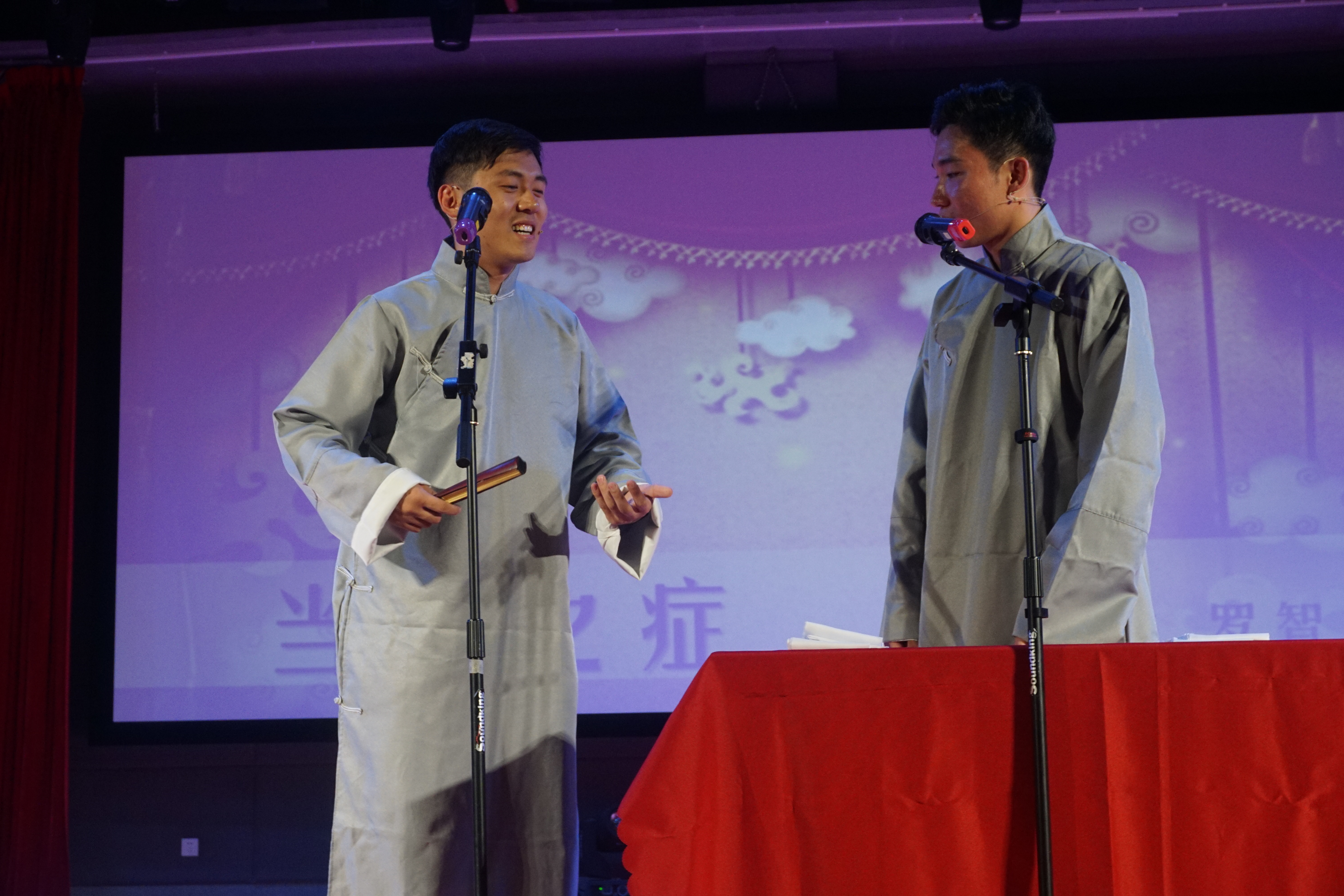 六点四十五分,观众们有序入场并就坐。七点,迎新晚会拉开了序幕。首先,活力四射的外院学子为大家带来了热场舞蹈。随后,主持人宣布晚会正式开始。由歌手队的同学们演唱的歌曲串烧《从原点追光一路有你》一下子将晚会带入了一个高潮。紧接着,心理剧《逃声》中,演员们精湛的演技引来了学生们的阵阵喝彩。而随后的节目也是精彩纷呈,炫酷的歌舞表演将晚会推向了又一个高潮,而太鼓表演《琉风鼓韵》则展现了学院学子朝气蓬勃的特点。惯例节目——外语歌曲联唱又给现场注入了一股青春的气息。相声《当今之症》中,表演者姚智誉、罗智权用一贯的幽默方式给大家带来了欢声笑语。最后的压轴节目——走秀《P&Q》燃爆全场,引来观众们的尖叫声和欢呼声。此次晚会的表演种类多样,获得学生们的好评。
