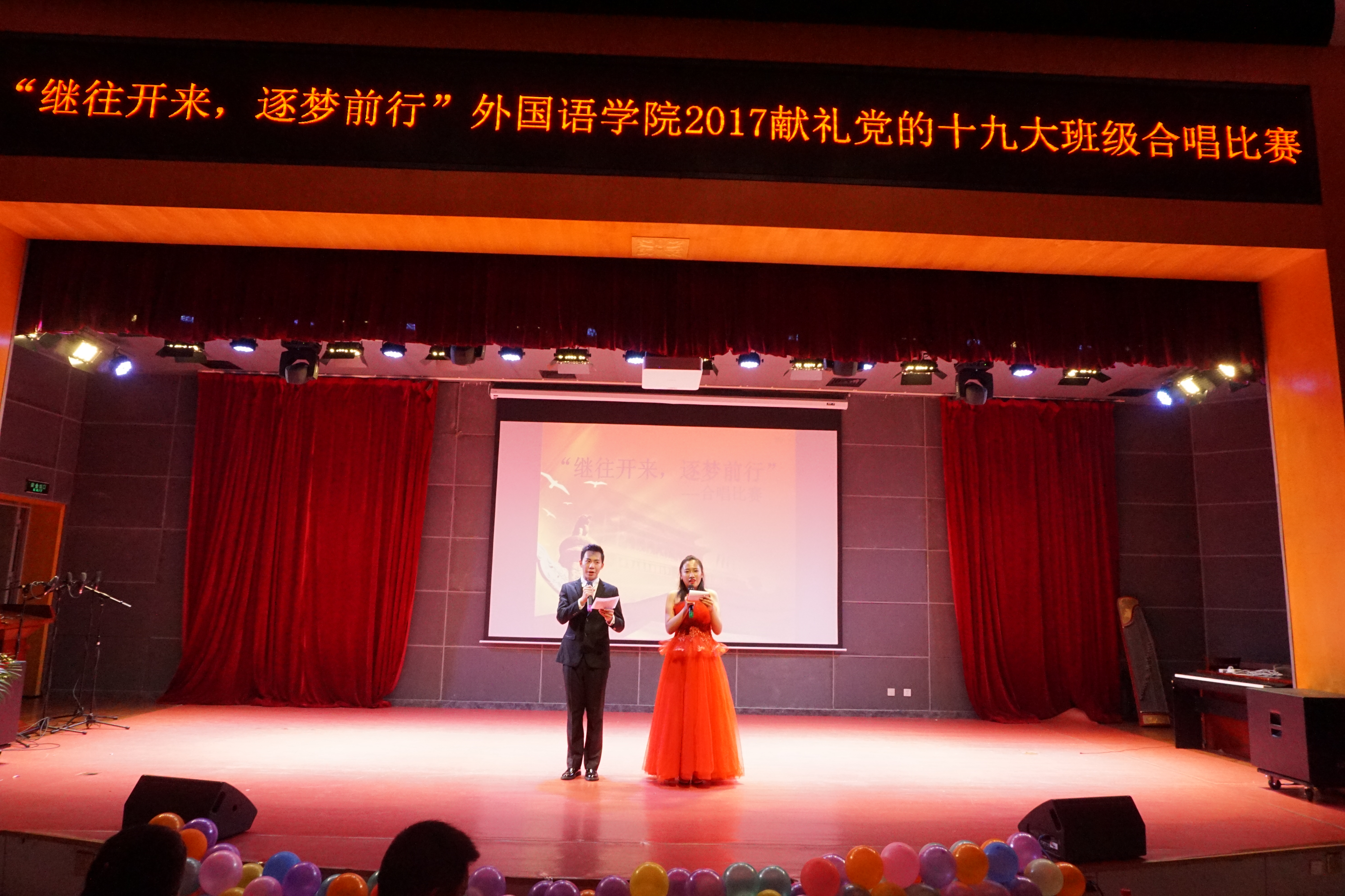 此次“继往开来,逐梦前行”外国语学院班级合唱比赛响应十九大号召,秉持着“力学笃行十九大,砥砺躬创先锋岗”的精神,充分展现了外院学子昂扬向上,积极进取的精神风貌。在此,我们也祝愿全体外院学子们不忘初心,继往开来,在逐梦路上砥砺前行,铸就辉煌。