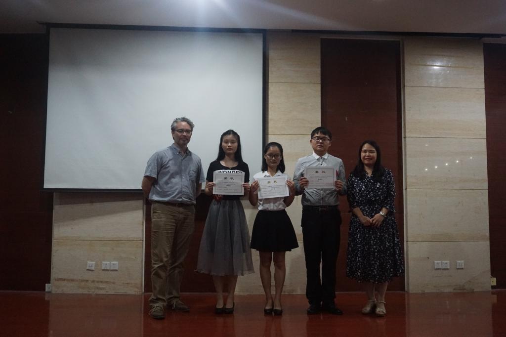 各学院的24名选手晋级决赛。比赛共分为三个环节,分别为定题演讲,即兴演讲和评委提问。此次定题演讲的主题为“China,A Global View ”,选手们在限时内富于激情地为大家描述了自己眼中的祖国,无不流露出对祖国繁荣昌盛的自豪感。在即兴演讲和评委提问环节中,选手们需要在15个演讲主题中抽取其中一个进行即兴演讲,并回答外教评委的问题。难度有所加大,但选手们都能自如地应对外教的提问,出色地完成了任务。第二环节和第三环节过后,外教Sam对今天的演讲比赛做了点评,对优秀的选手们做出了极高的评价。
