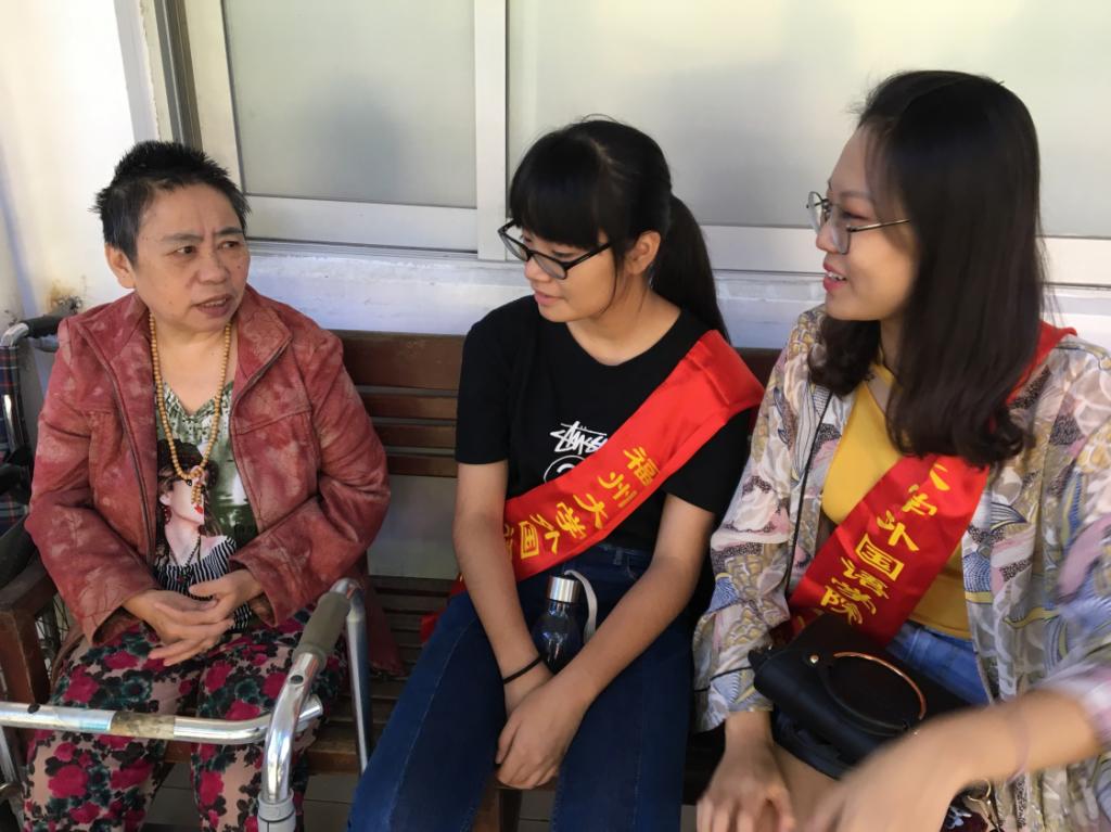 上午8点10分,部员们乘公交前往五福缘敬老院。到达后,负责人红十字会会长陈鑫与敬老院相关人员对接,将部员分组安排至各层。老人们对于部员们的到来表示热烈欢迎。大家在敬老院里陪伴孤独落单的老人,用心倾听老人讲话,为他们排解内心的苦闷。有的部员还为老人播放他们喜欢的歌曲,为他们拍照,陪伴他们欣赏其他部员表演的精彩节目。在部员们离开时,老人们发自内心地表达了感谢。