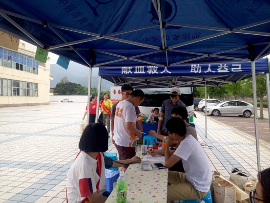 早上九点,外国语学院红十字会的部员们以及志愿者在会长的带领下来到青春广场布置现场。半小时后,福州省血液中心的医护人员抵达现场。志愿者们积极配合医护人员将现场按工作流程分为咨询区、采血区两大部分。早上九点半献血活动正式开始。