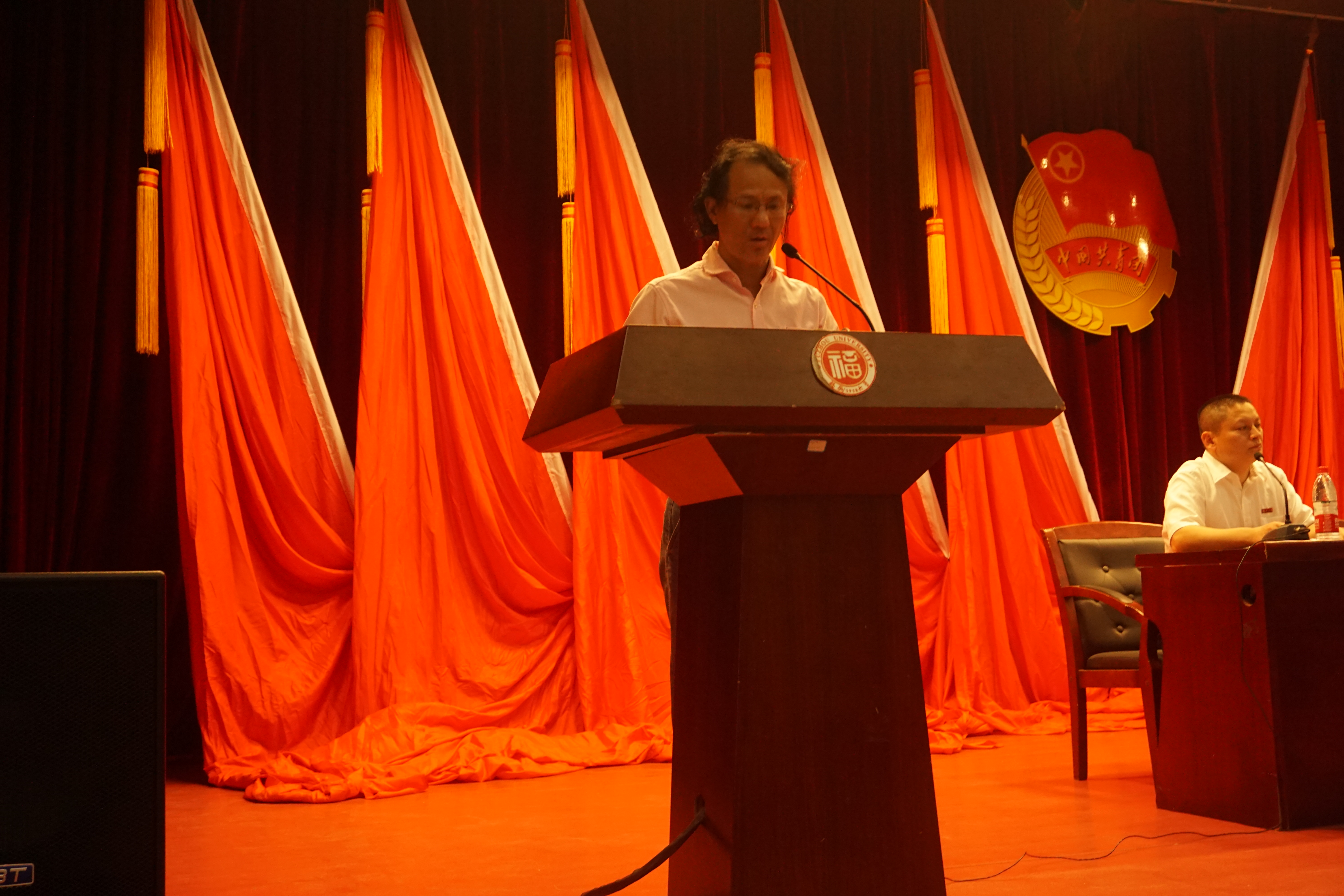 5月5日中午,外国语学院2017五四表彰大会在图书馆明德厅隆重举行。外国语学院党委倪朝兴书记、院长潘红教授、党委周强副书记、副院长王平副教授、副院长钟晓文副教授、团委书记林昕老师及学院部分师生共同参加了表彰大会。由周强副书记主持。
