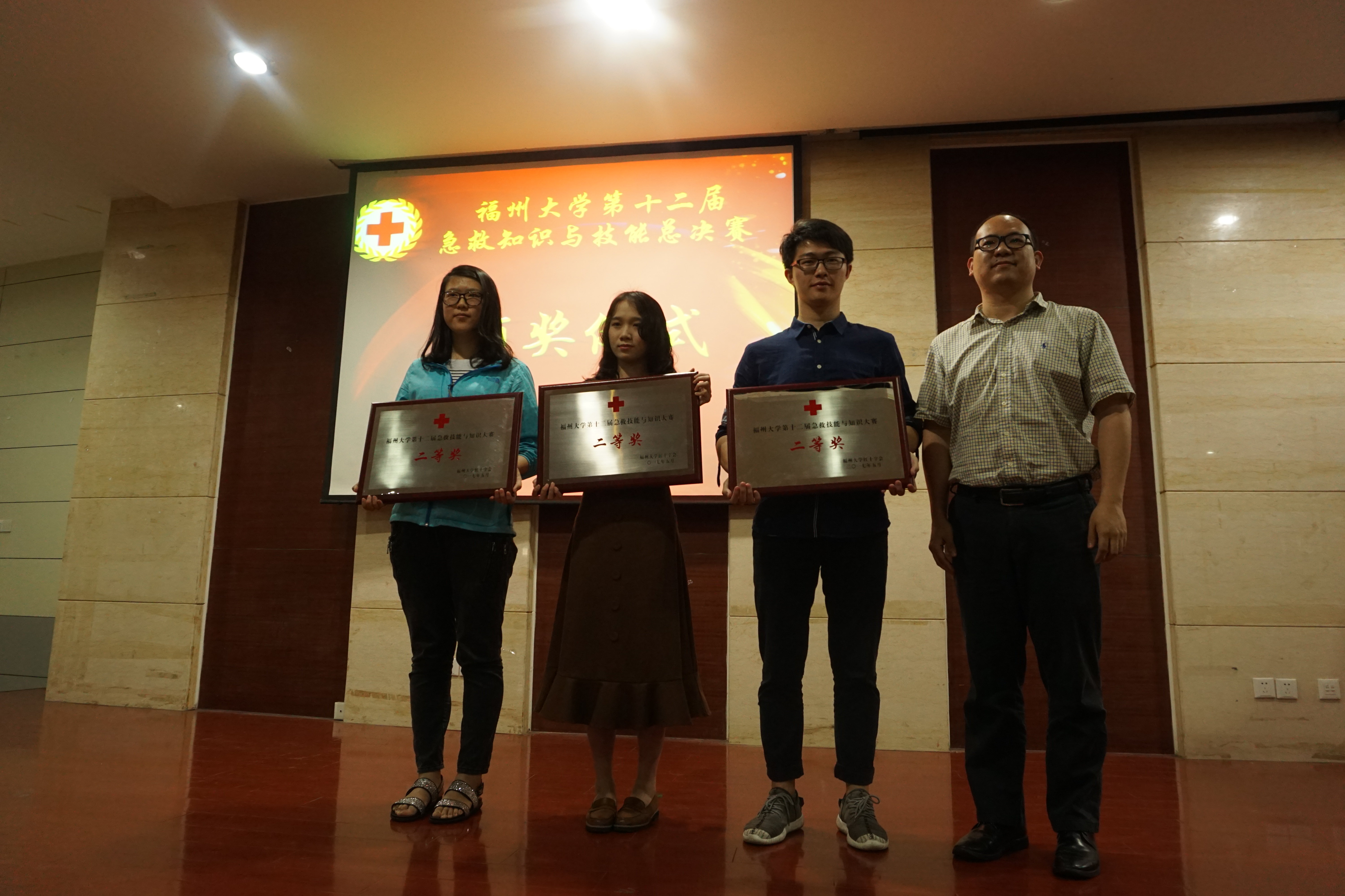 所有队伍均演示完毕后,比赛进入评委打分环节。一阵短暂的休息过后,主持人宣布了最终的比赛结果。来自生工学院的队伍取得了本次大赛的一等奖;外国语学院、土木学院、材料学院荣获本次急救大赛二等奖;经管学院、物信学院、数计学院、法学院、建筑学院获得三等奖。