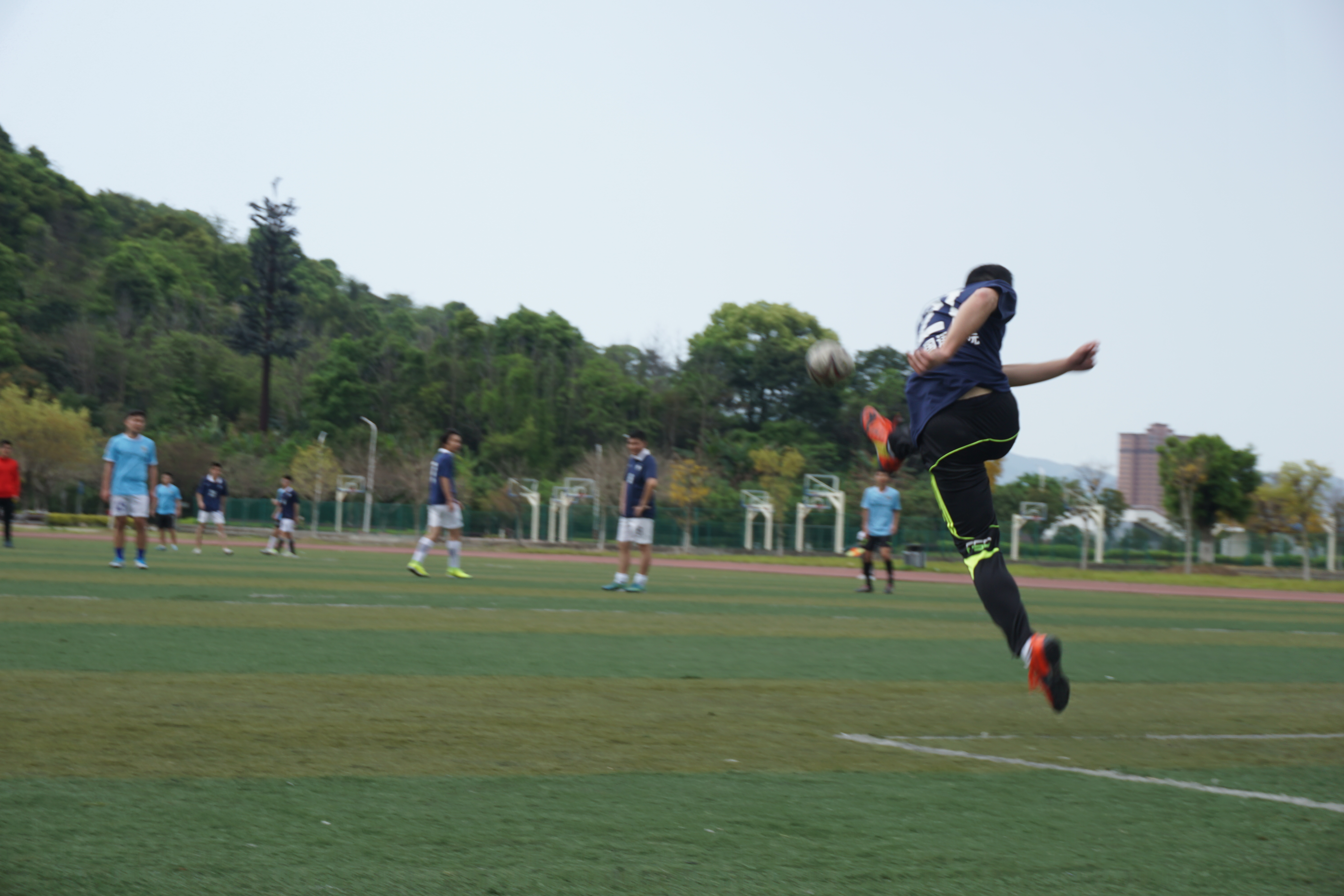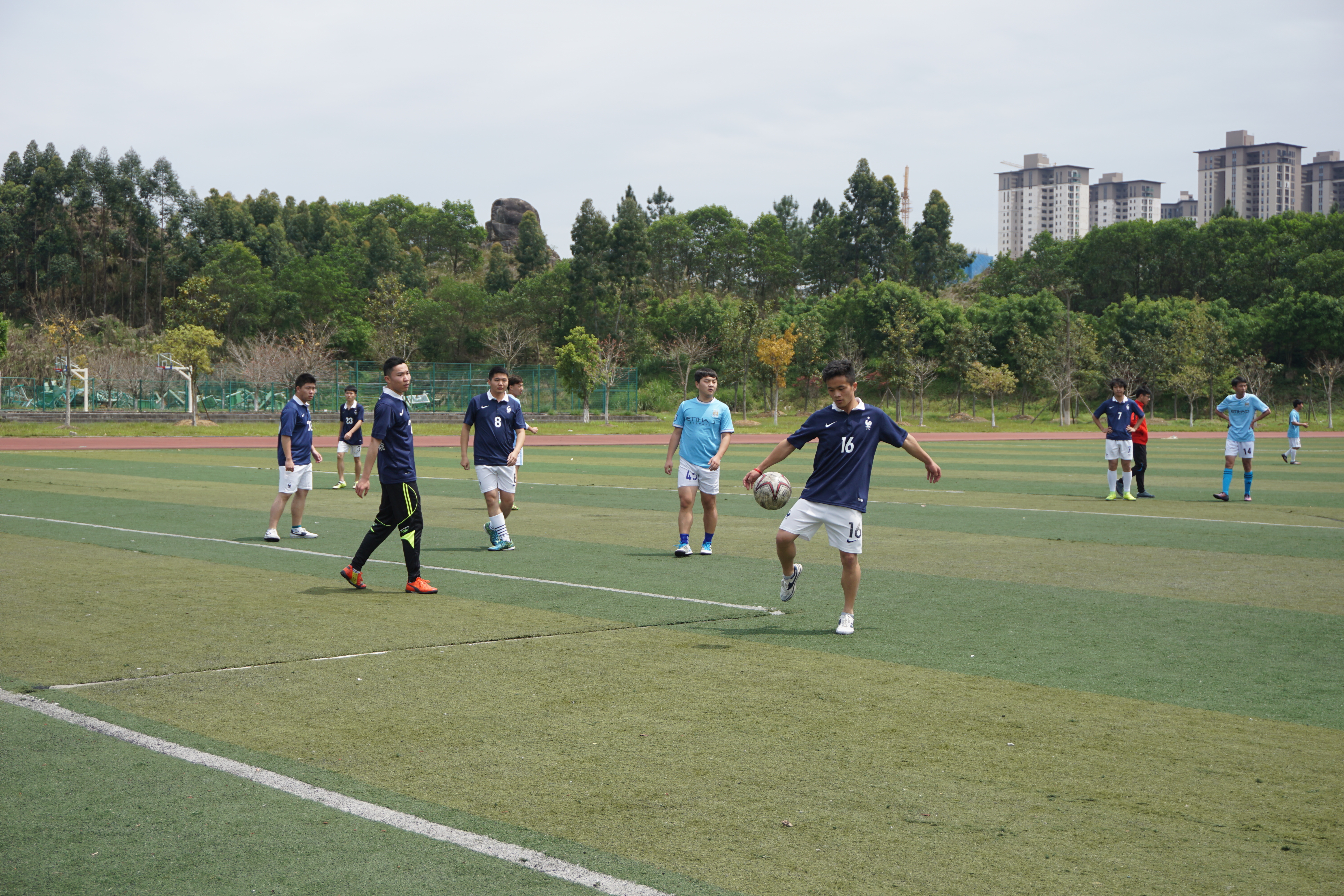 当天下午,天朗气清,惠风和畅,暖暖的阳光洒向绿茵场,双方队员却丝毫没有松懈,全神贯注地进行防守和进攻。上半场的比赛中,两支队伍实力相当、紧咬比分。当一方队员带球冲到对方球门前时,另一方队员不甘示弱,通过与队友的配合,全面压制对方。经过短暂的中场休息,双方队员调整状态,重新上场。在下半场的比赛中,比赛形势愈加激烈,双方队员之间的周旋也更具看点。草地上,白线外的观众们屡屡为队员精彩的表现鼓掌喝彩。双方斗志昂扬,但奈何外院队员体力消耗过大,给了本就控球技术了得的对手连连进球的机会,最终惜败。