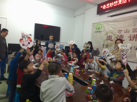 上午9时,活动正式开始。在主持人的带领下,小朋友们首先进行复活节彩蛋的绘制,并学习有关复活节的文化知识和基本英文词汇。随后,志愿者与小朋友们一起动手制作纸杯小动物。在小朋友们利用志愿者分发的材料包制作小动物的同时,志愿者教给他们许多动物的英文说法。最后一个活动为绘制纸扇,志愿者们鼓励小朋友们展开想象,绘制属于自己的纸扇。在活动的过程中,志愿者们分工配合,细心照顾到每一个小朋友,并热情耐心地为他们解答疑惑、提供帮助。