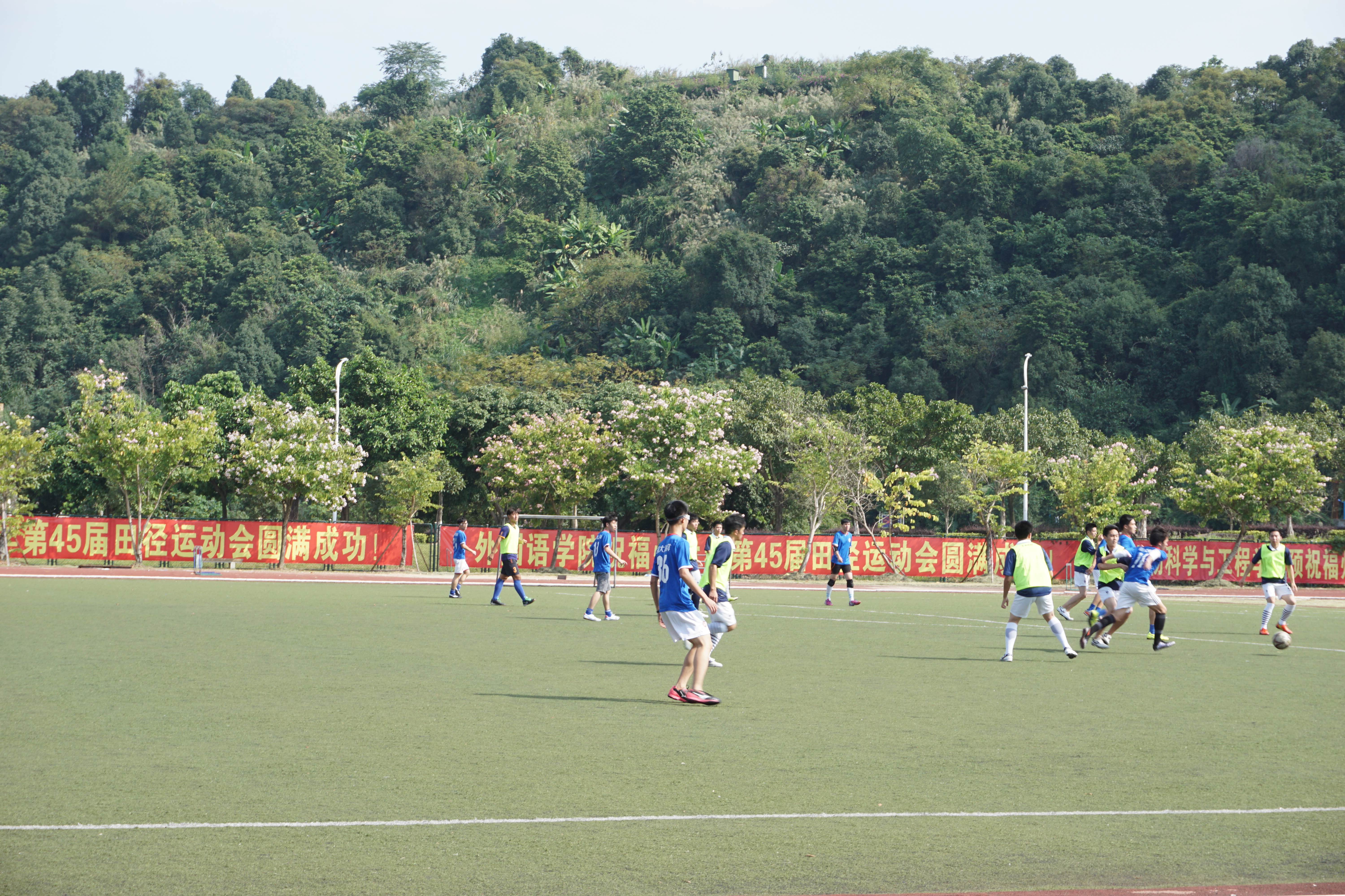 整场比赛打得十分火热。上半场开始不久,海洋学院就趁外国语学院立足未稳先进一球,随后气势不断高涨。外国语学院的球员们并没有泄气,继续在球场上奋战并渐入佳境,但直至上半场结束仍未能反超成功。真正的对决在下半场,双方队员都使出了全力你拼我抢,没有丝毫的保留。在激烈的对抗中,外院球员中有人意外负伤,但比赛只暂停了几分钟,受伤的球员便重回赛场,激情不减。队员们在场上争先恐后,来回传球,配合默契。随着结束时间的逼近,场上形势越来越紧张。双方僵持了十几分钟之后,比赛结束的哨声吹响,外国语学院的勇士们最终不敌实力更为强劲的对手,惜败海洋学院球队。