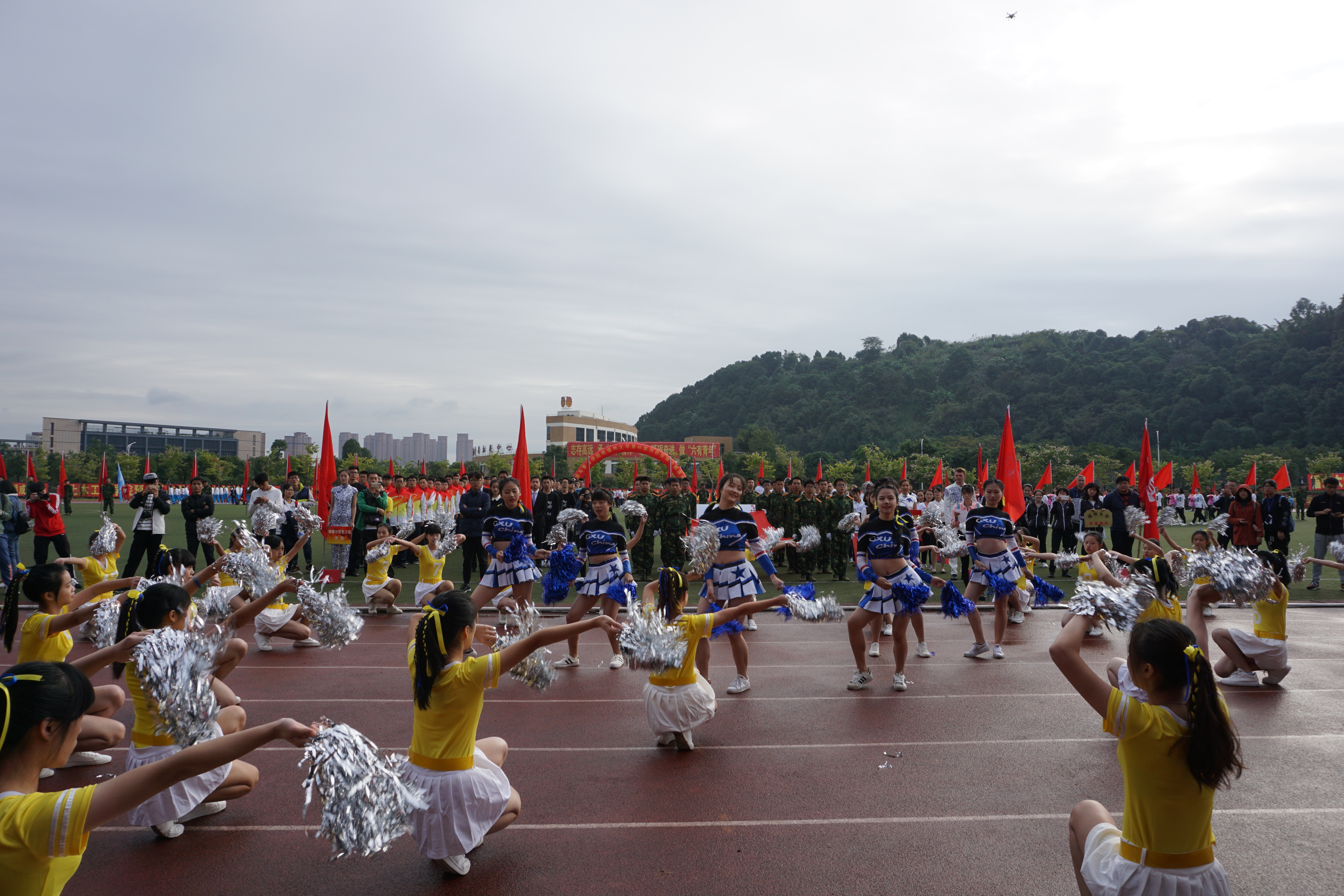 上午8时,在浑厚的鼓声中,开幕式正式开始。伴随着激昂欢快的音乐,由学院代表队组成方阵,踏着整齐的步伐依次昂首步入会场,逐一接受领导检阅并献上开幕式表演。外国语学院代表队在学院团委书记林昕老师等的带领下入场亮相。队列中36名同学身着青春亮丽的裙装,迈着矫健轻快的步伐,高喊冲震云宵的口号,挥舞手中的花球,以热情活跃的姿态承载外院学子对校运会的热切期待;方阵行进至主席台前,36朵外院之花跳起健美灵动的啦啦操,舞出了外院学子的精彩与活力;而舞蹈最后如魔术般展开的书有“弘扬长征精神,争创校运佳绩”十二大字的横幅,更是表明了外院学子将以着钢铁般的意志和精神,自信勇敢,团结合作,在此届校运赛场上争创佳绩的决心。轻盈大方的舞蹈与精心巧妙的编排为全校师生带来了精彩的视觉感受,成为开幕式上一道绚丽的风景线。