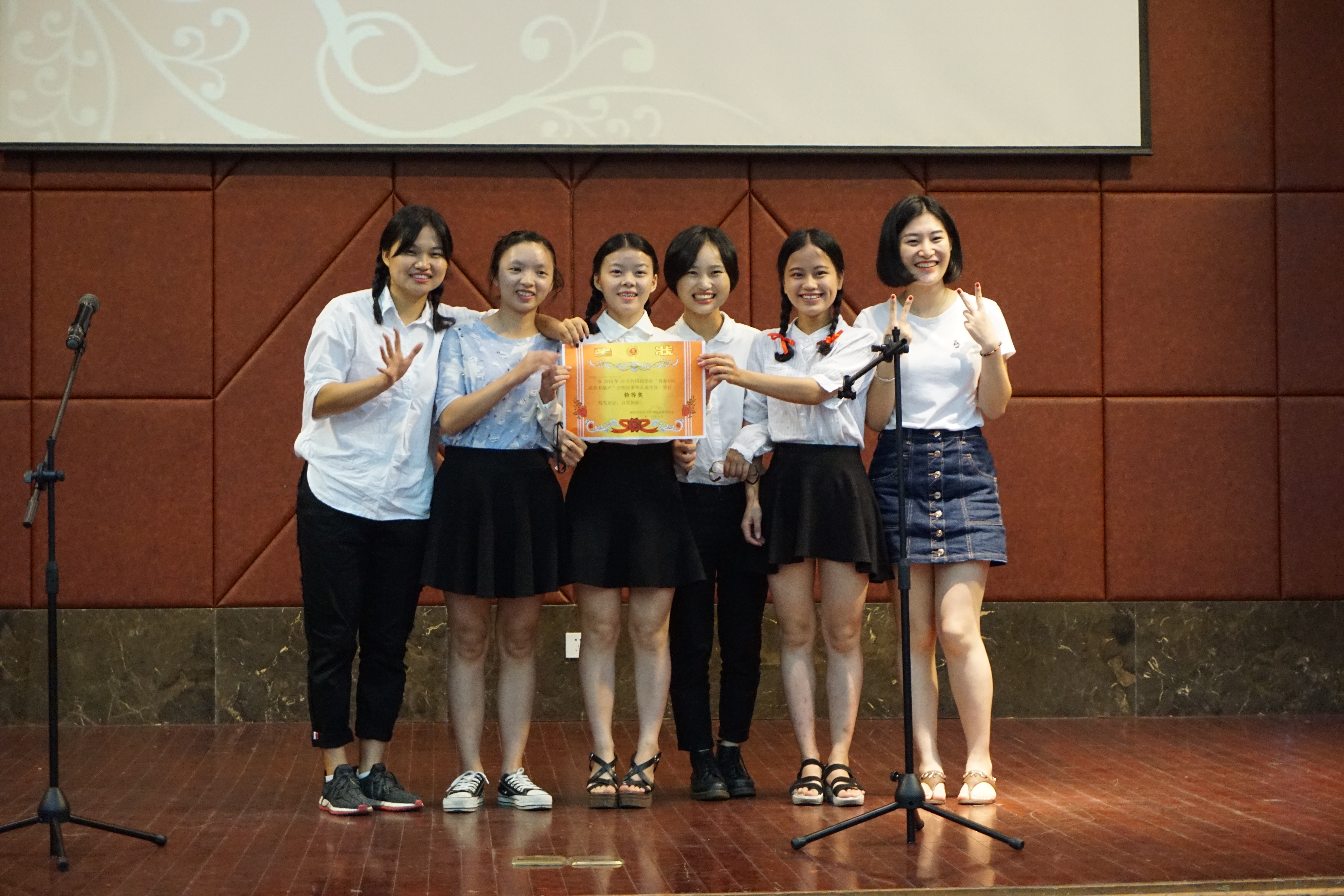 经过紧张的比拼,14级英语四班的同学以一首脍炙人口的《十送红军》取得了本次比赛的最好成绩,紧随其后的是15级日语班、14级日语班、14级英语二班、15级德语班以及16级英语一班。这些班级将代表外国语学院参加校赛,与来自其他学院的班级同台演唱,在此衷心预祝晋级的班级在校赛上再创佳绩。