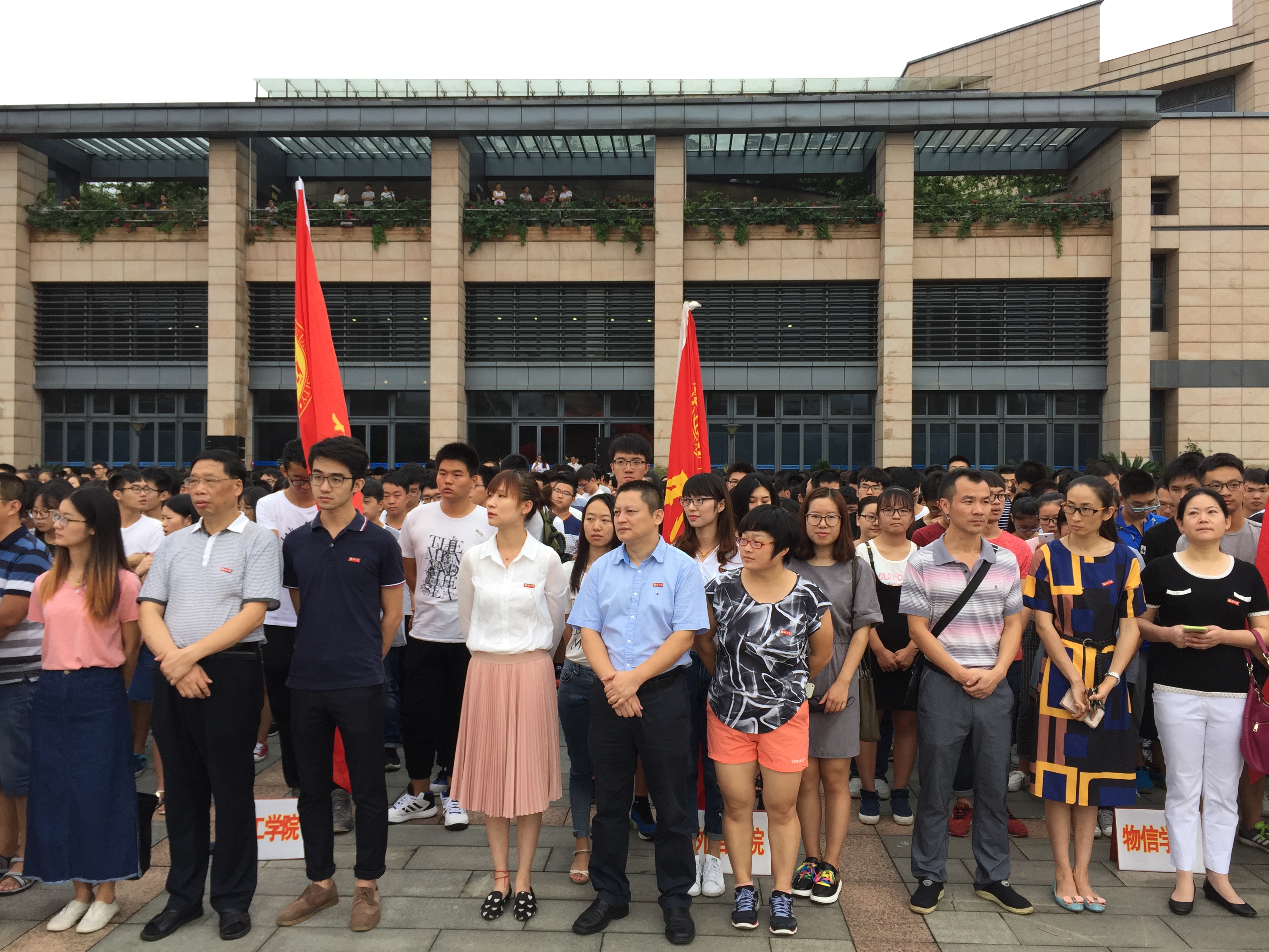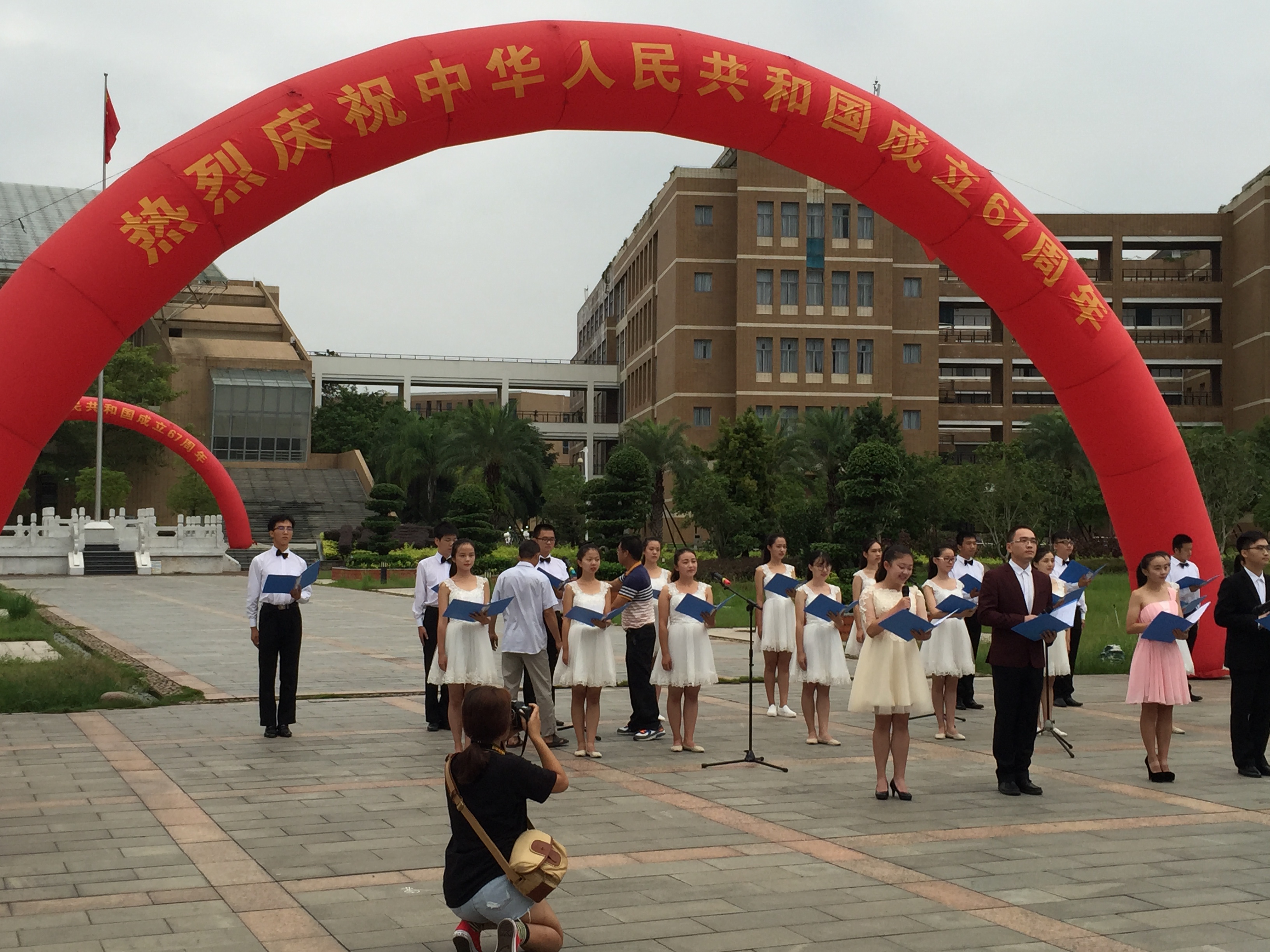 10月1日早晨,为纪念中华人民共和国成立67周年,Av在线观看 部分师生齐聚旗山校区福万广场,举行隆重的升旗仪式。外国语学院党委周强副书记,院团委书记林昕老师,以刘燕老师为代表的各级辅导员2016级外院全体新生参加了本次升旗仪式。