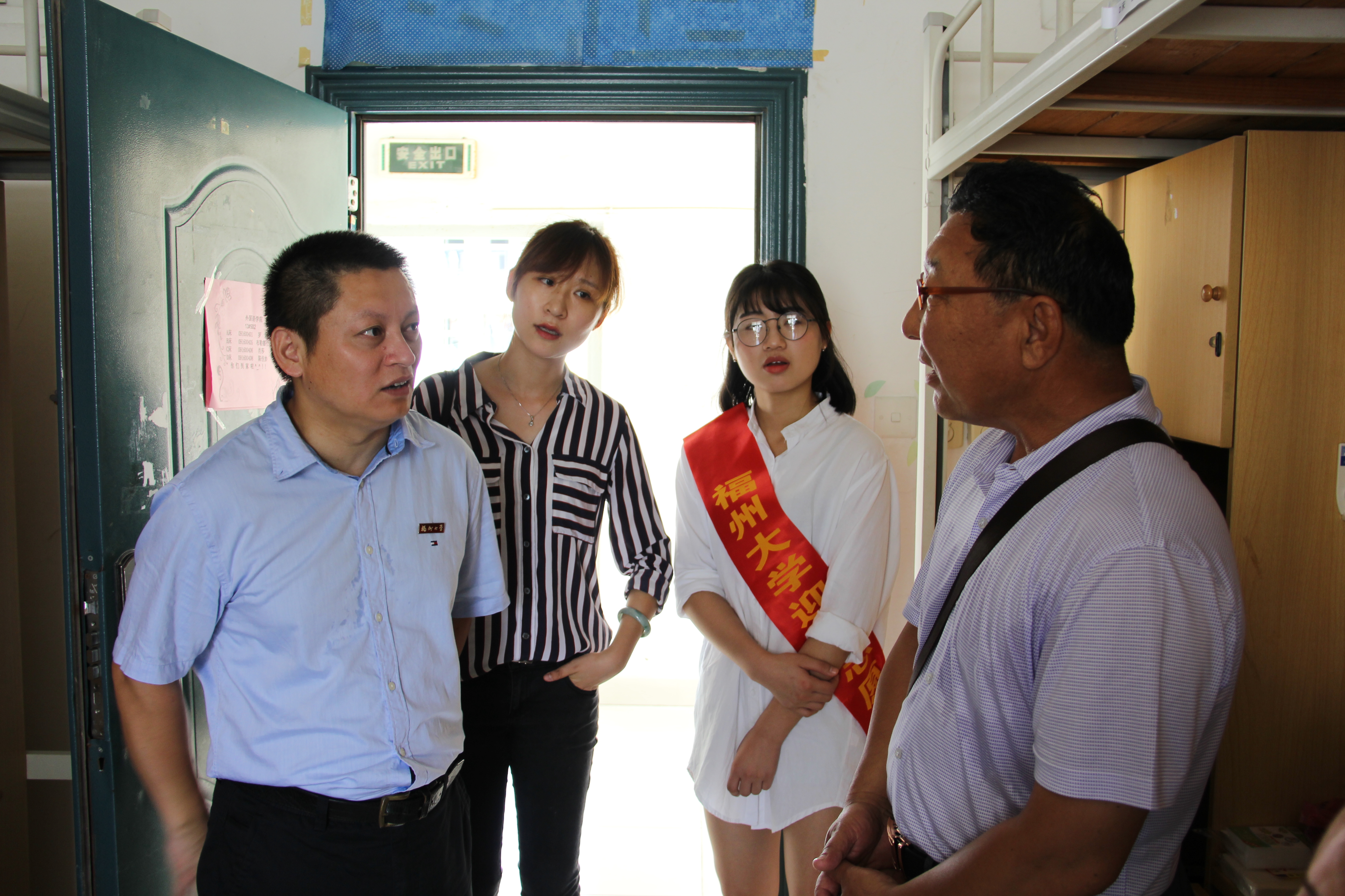 他们走进宿舍,与学生及家长亲切交谈,并细致地检查了宿舍的卫生状况和硬件设施,确保新生宿舍生活的安全与舒适。走访期间,周副书记一行特意来到13号楼五楼的一间宿舍,看望来自新疆阿勒泰地区的一位少数民族新同学,细致询问其对福州水土气候的适应情况,并代表学院师生对远道而来的新生和家长表示诚挚的慰问与关切。