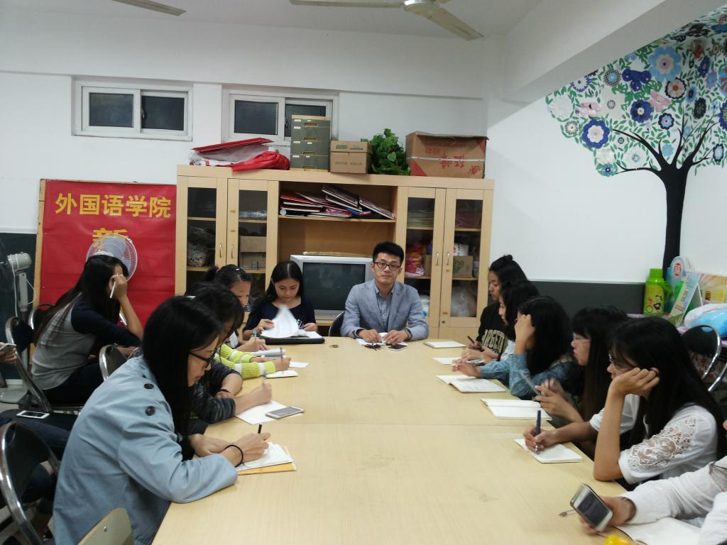 10月10日晚上9点,外国语学院在团委学生会活动室召开青运会前期工作安排会议,辅导员黄小龙老师主持本次会议,负责青运会志愿服务的13级各分组组长们参加了本次会议。
