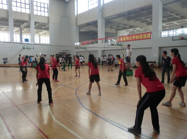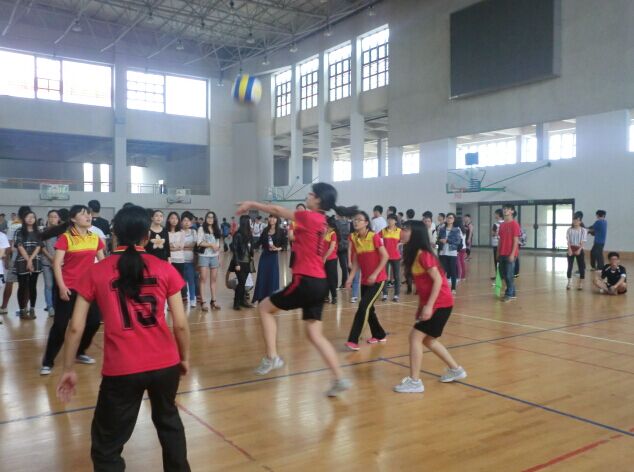 4月19日早上10点30分,外国语学院女子排球队对抗数学与计算机学院女子排球队的比赛在三区体育馆举行。