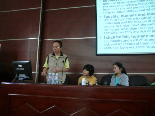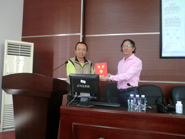 讲座开始前,钟晓文副院长为钟勇博士颁发聘书。随后,钟勇博士改变自己单独开展讲座的形式,亲切邀请在场两位本科生一起上台就坐。接着,钟勇博士从话语研究个案及心得分享,提倡对翻译话语的另类思考这两个方面展开此次讲座。在讲座过程中,钟勇博士以问题的形式启发并引导在场听众的思考,给在场观众留下深刻印象。此外,钟勇博士还分享了自己的翻译经历,与在场师生做了交流,并在最后的提问环节,对观众的提问耐心地做了详细的回答。