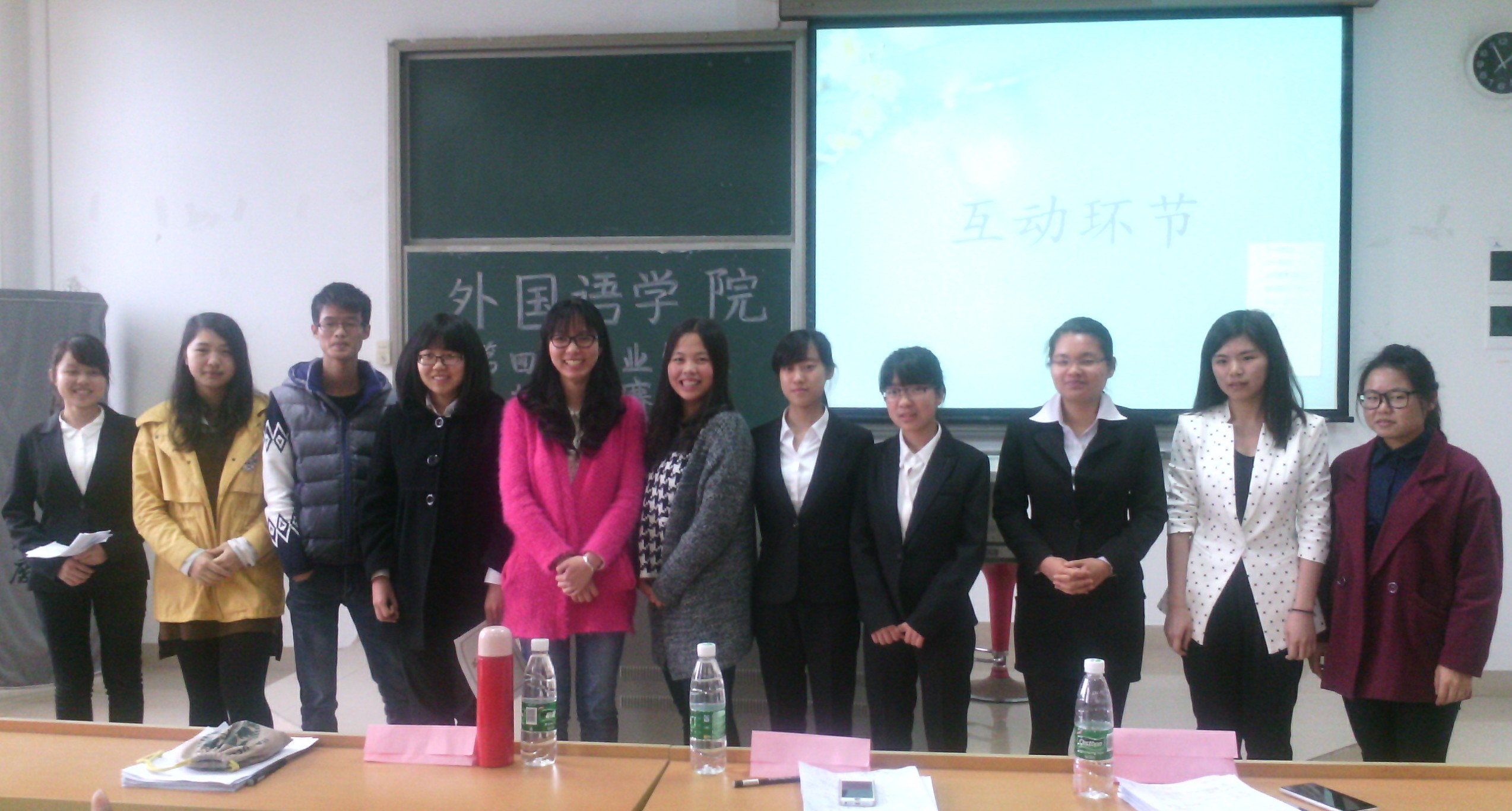 4月11日上午,由外国语学院职业发展部主办的外国语学院第四届职业生涯规划大赛在文一204举行,外国语学院辅导员刘文婷老师、团委学生会主席李晓婷同学和上届校职业规划大赛一等奖获得者魏仙丽同学担任评委。