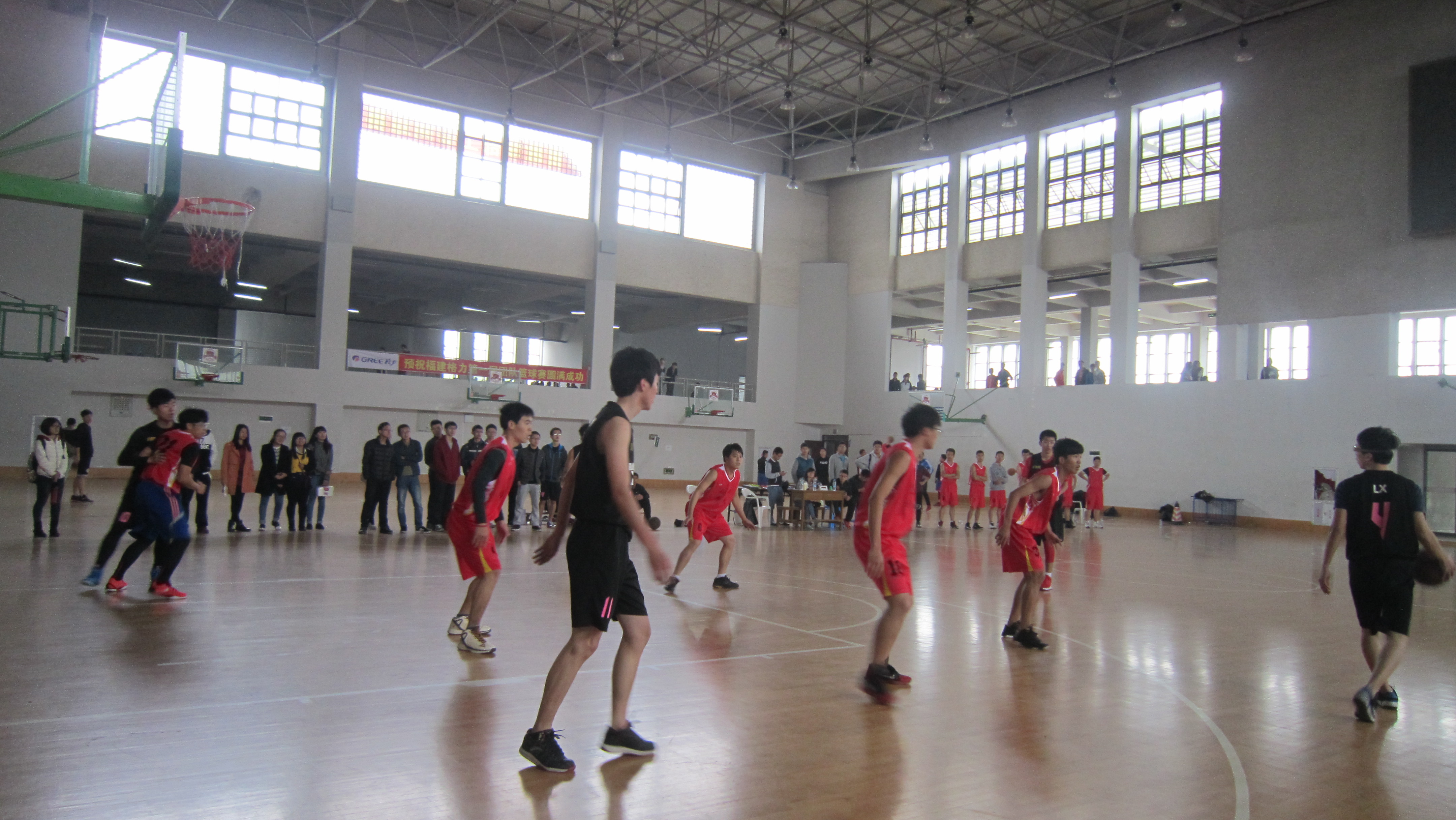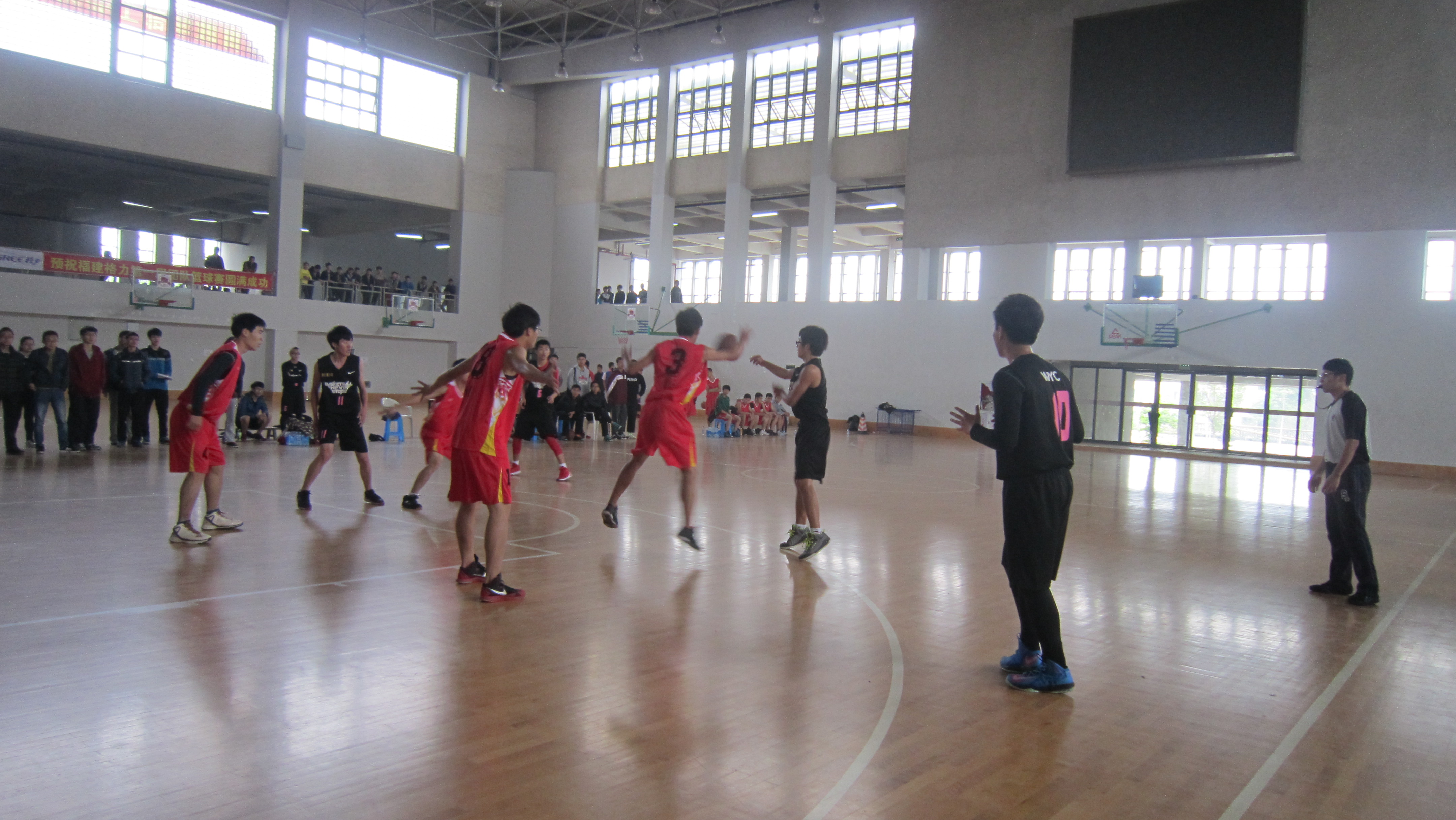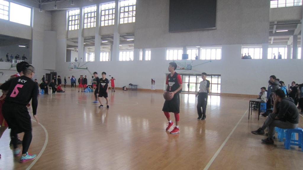 校篮球联赛小组赛之外国语学院对阵化学学院篮球队的比赛在三区室内篮球场如期举行。