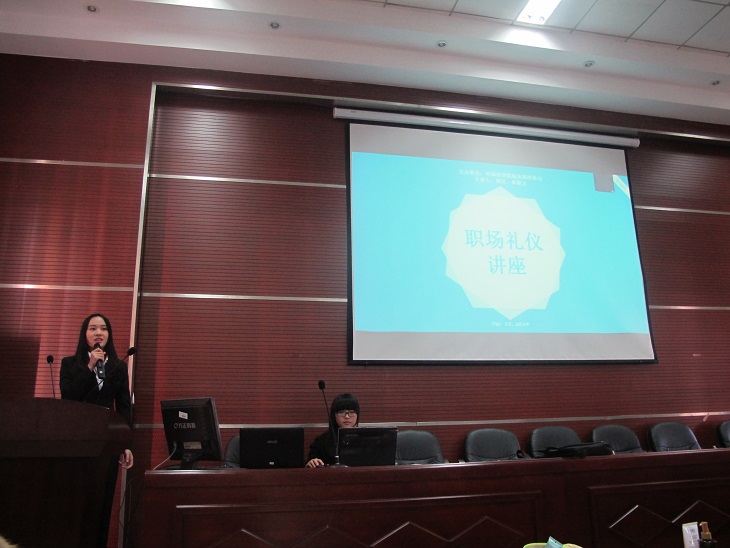 12月13日上午9时,由外国语学院院友联络协会主办的职场礼仪讲座在外国语学院院办会议室举行。本次讲座由胡昊老师主讲,主要介绍了女性化妆保养,面试着装规范等交际礼仪知识,吸引了不同年级的学生前来观看。