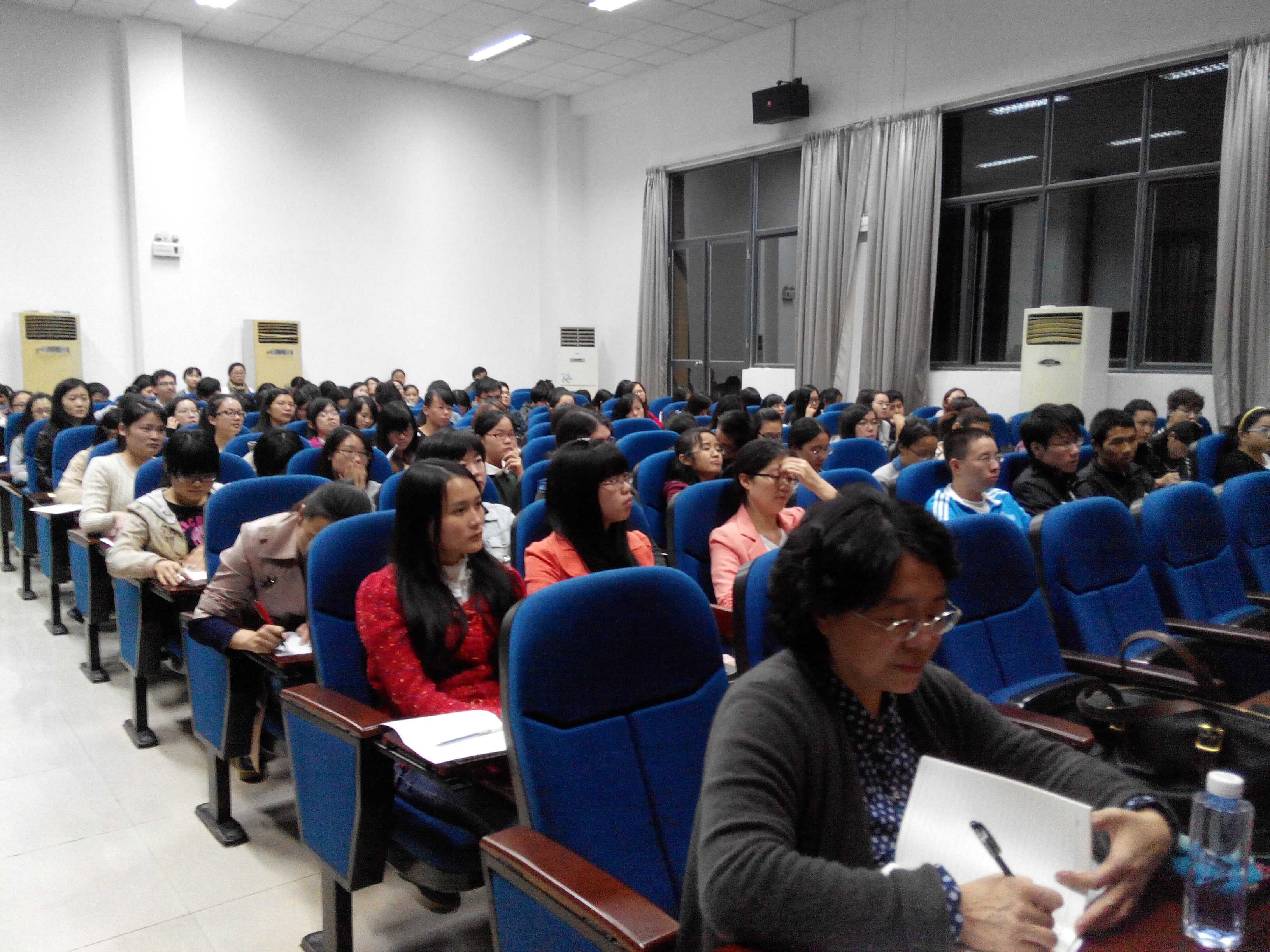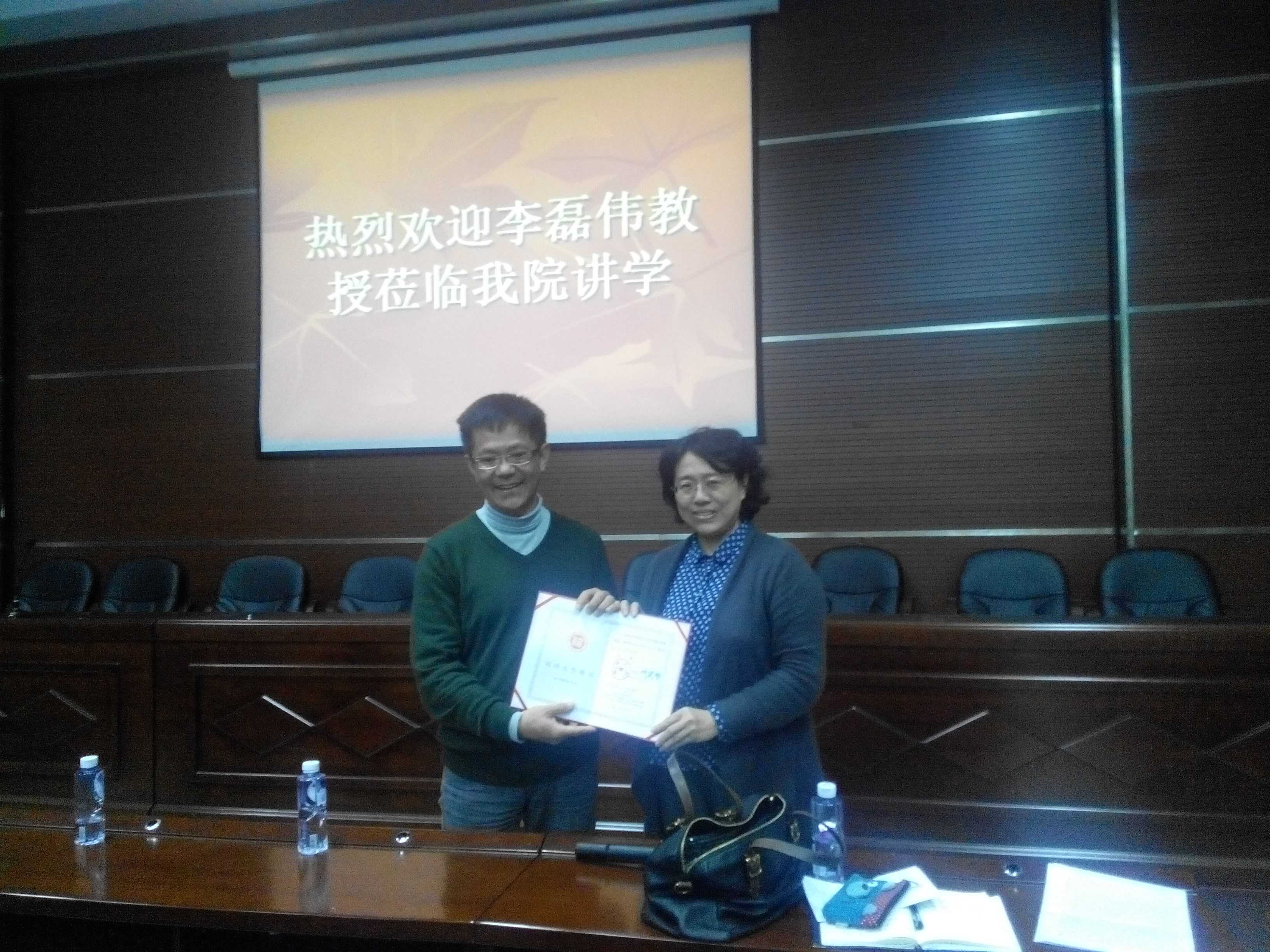 讲座首先由潘红院长为到场教师及学生们介绍李教授。据悉,David Leiwei Li (李磊伟)博士为美国俄勒冈大学英语系教授。主要研究亚裔美国文学研究、跨文化交际、电影叙事和文化等。因其学术成就,李教授应邀在德国、英国、加拿大、意大利等国大学作各类学术讲座。简单介绍过后,李教授一开讲便开门见山,直接步入今天的讲座主题——谈电影《饮食男女》。李教授从李安的“家庭”三部曲系列电影入手,很好地吸引了观众们的注意力,并从电影中的翻译以及情节为依据,步步深入、逐层分析,为观众们讲解了中美两国之间的家庭以及恋爱文化的差异。一小时后,教授的电影文化分享结束后开始了自由提问。在场的教师和学生们积极提问,李教授都不乏幽默地一一解答,赢得了在座师生的热烈掌声。最后,潘红院长为李教授颁发了受聘证书,并对李磊伟教授的到来表示诚挚的感谢和热烈的欢迎。9时许,讲座在掌声中顺利落幕。