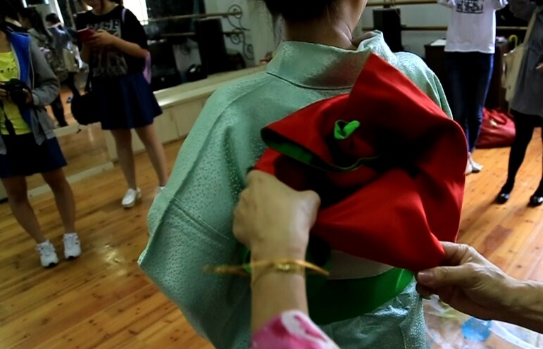 在简单介绍完此次活动后,老师们和樱花日语爱好者协会的工作人员们做好服装准备工作,随即老师们便开始为学生们进行和服穿戴。穿戴过程中,老师们时刻面带笑容,一丝不苟,从发型到鞋子都认认真真地为进行试穿体验的学生们整理好。进行试穿体验的学生们穿上和服后,新奇、激动之情难掩,纷纷进行拍照留念,其余观众也跃跃欲试。10点30分许,由于还有很多学生想要进行试穿体验,老师们不辞辛苦地为学生们进行第三次试穿,让更多学生有机会试穿和服,感受日本传统文化。试穿结束后,学生们仍意犹未尽,在日语系高年级学生的翻译帮助下,学生们积极地与老师们进行交流,表达对老师们的感谢,并且从中收获了关于和服以及其他日本文化的知识。