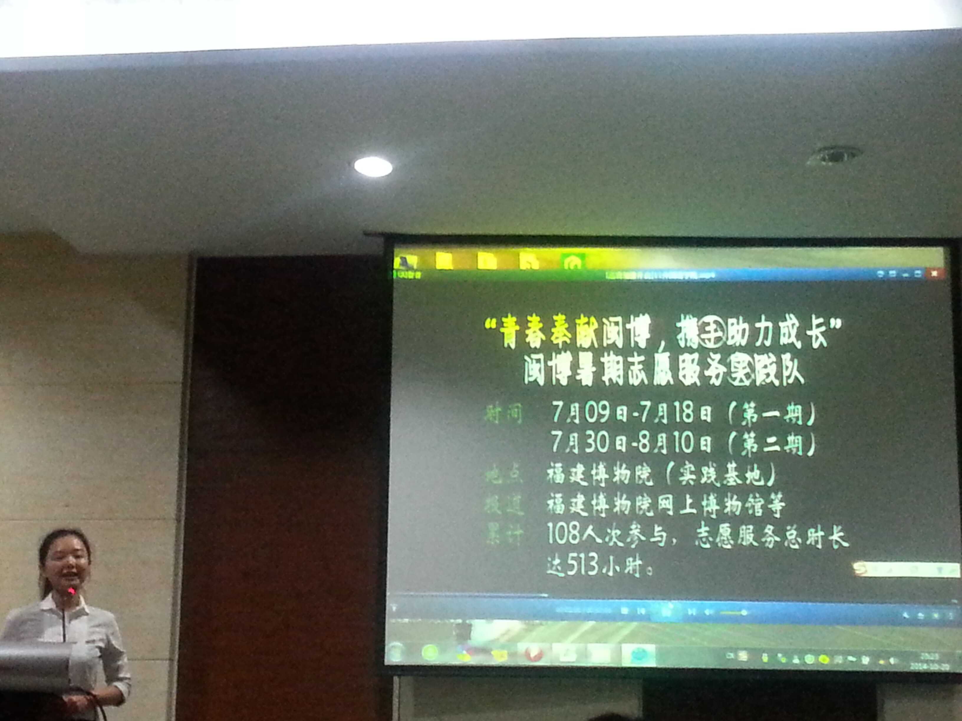 其中,外国语学院用视频展示的方式,向评委与观众们展现了暑假以来学院社会实践成果。外国语学院的农家书屋志愿者们积极投身于“农家书屋”的志愿者教学活动中,用最真诚、最温暖的心给“农家书屋”的孩子们送去关爱与知识。同时,与福建省博物馆长期合作的闽博志愿者团队为博物馆提供双语讲解,赢得博物馆的工作人员及参观游客的一致好评。各个学院的实践活动各具亮点,都在不同程度上赢得评委及观众的肯定。