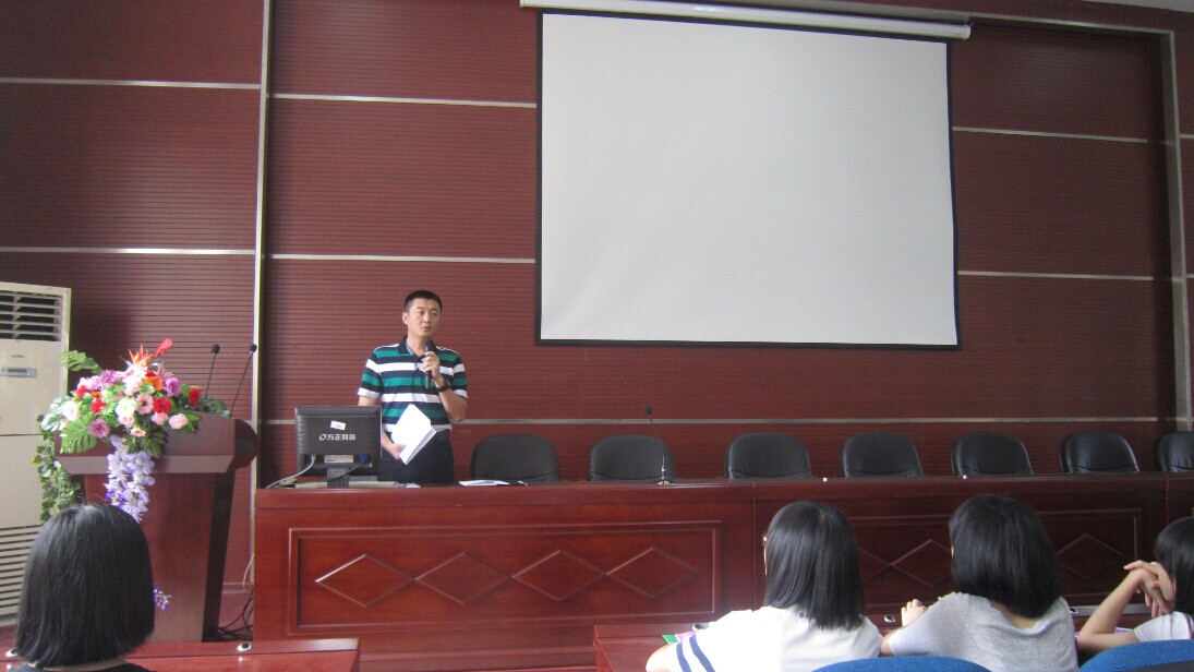 新生见面会于8时30分正式开始,参加见面会的有外国语学院团委书记、14级辅导员周越老师,12级本科生及研究生辅导员李坤皇老师。简单自我介绍以后,周越老师向新生们介绍了学院情况。随后是学籍教育与选课教育,教学办的王春雪老师和黄柑莲老师分别向新生介绍了有关入学、申请休学、中途退学及开学报道等内容。下午2时30分,由刘文婷老师主讲的职业生涯规划教育在学院会议室举行,旨在为刚进入大学校园的新生们指引了方向,让他们懂得规划自己的大学,懂得选择和取舍。