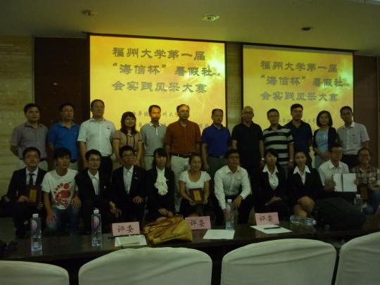 第一届“海信杯”暑期社会实践风采大赛总决赛在素拓220拉开帷幕,校团委书记黄阿火、校团委副书记王三强、人文学院社会学系主任甘满堂教授、魏德毓教授以及海信集团冰箱公司总经理严宇龄、经理李晓强、经理于守京出席本次比赛。本次风采大赛共有来自14个学院的16支队伍参加,外国语学院“城市之美,你我维护”——公共标识英文纠错实践队在第一轮调研报告筛选中脱颖而出,成为外院唯一闯入决赛的队伍。