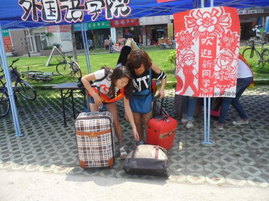 又迎来了一年一度的“迎新潮”,各个学院都将自己学院宿舍楼和迎新点布置一新,迎接新同学和家长的到来。9月5日,在学院党委团委领导的高度重视、学院学生会的精心组织与全体同学的积极配合下,外国语学院2013级本科生和研究生的迎新工作顺利展开。