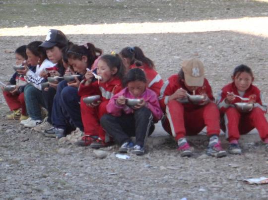 ,詹兰雪与其他来自其他高校的五名志愿者们来到此行目的地囊谦县觉拉乡第二寄宿小学,开始为期