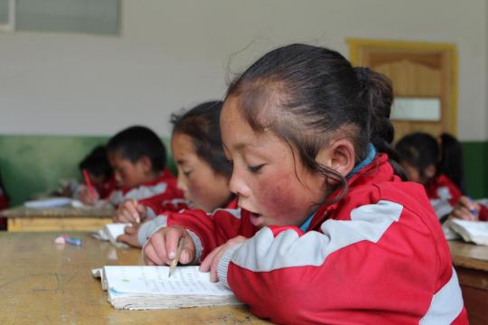 ,地理位置偏远,进出交通不便。目前学校在校学生一百五十余名,分布在六个年级,教师流动性较大。学校虽然有了新的教学楼和宿舍楼,但教室里还未通电,条件仍然比较艰苦。支教志愿者们负责孩子们的日常教学与管理工作。孩子们