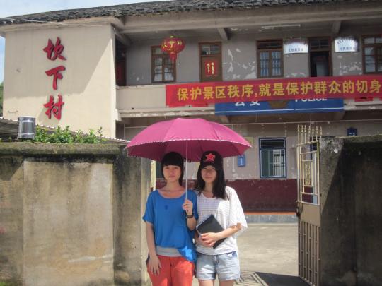 外国语学院12级英语4班的同学们继昨日实地考察云水谣古镇后,今日开始深入采访,力求从多个对象处了解古镇保护现状及再发展的情况。本次的采访对象是坎下村的村主任简德彩和村支书简建生。
